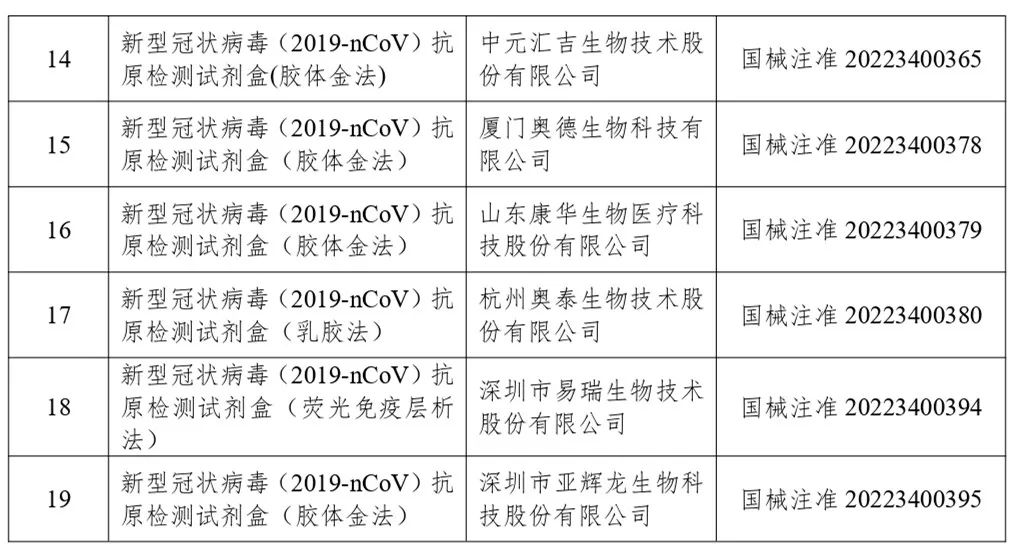 国家药监局已批准19个新冠病毒抗原检测试剂