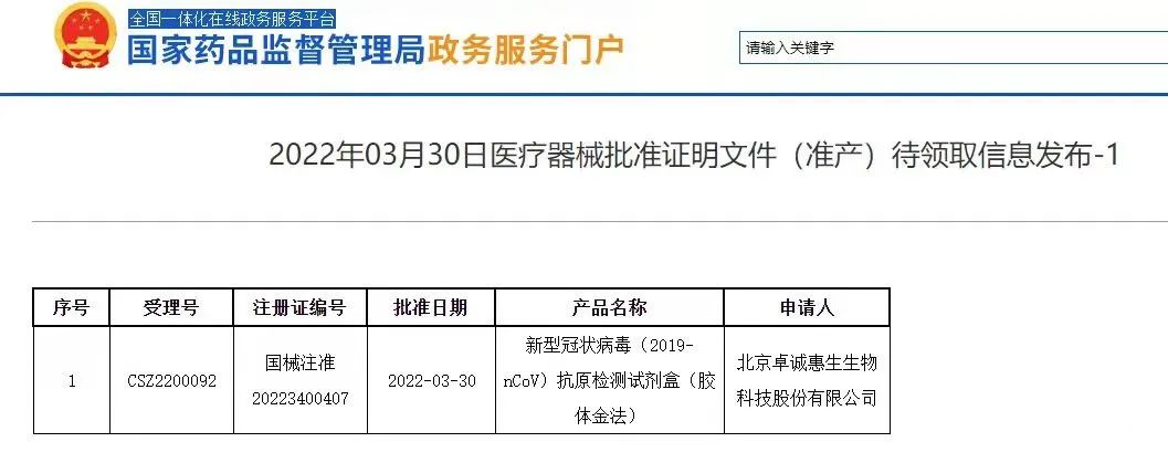 最新:第21家新冠抗原试剂获批!——卓诚惠生