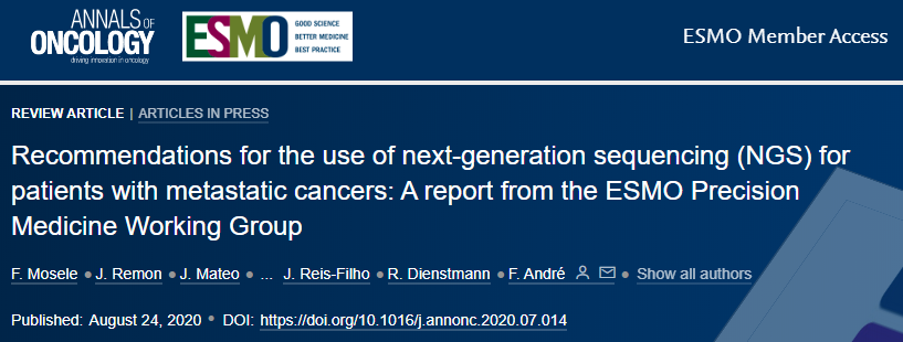 关于一次测多少个基因,指南建议,在额外成本可接受的情况下,可以选择大一些的套餐(Panel)。ESMO转化研究和精准医学专家组主席Joaquin Mateo博士解释,使用二代测序技术同时检测多个基因的优势之一是,仅需要少量组织,避免了对大量活检的需求。“但是,我们不能忘记,有时候癌症会随着时间的推移而发生变化,因为癌细胞会不断适应疗法。因此,是一开始就做大量检测,还是考虑肿瘤演变(后续实时检测),我们必须平衡考量。”Joaquin Mateo博士表示:“精准医学从研究转向日常临床实践并不容易。通过就二代测序的使用提供基于循证的指南,ESMO致力于为所有癌症患者提供平等获得最佳诊疗的机会。”知识拓展:截至 2020 年初 NCCN 发布的治疗指南推荐的生物标志物和创新生物标志物