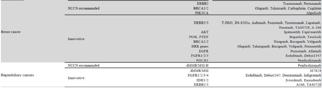 - 强烈建议临床研究中心在分子筛选过程进行多基因测序,增加获得新药物的机会并加速临床研究。II-IV级的很多突变对乳腺癌,胰腺癌和肝细胞癌有重要意义。
