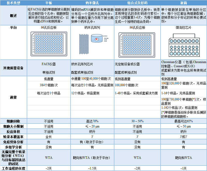 1、考虑你的目标 多样性是生活的调味品,但要挖掘所有你可以使用的学术和商业上的单细胞测序方法,似乎令人生畏。在本文中,我们将帮助你对一些选择进行分类。了解每种方法在产量、洞察力的深度、仪器要求和动手实验方面提供了什么将是很重要的。了解这些可以帮助你确定最适合你研究目标的单细胞测序平台。 2、不同的单细胞测序方法 目前可用的单细胞测序技术的阵容在几个主要方面彼此不同。首先是用于将单细胞分割成含有微反应的物理平台。这是单个细胞内容被释放的空间,转录物或其他生物分析物被标记为下游识别,或被索引。如何进行索引是现有技术之间的另一个主要区别,正如生成可测序文库的工作流程步骤一样。 这里有太多的方法,所以我们想重点总结一下当今研究人员使用的四种最流行的单细胞测序平台。 3、了解过程 这些强大的测序方法都有各自的优势。然而,选择适合你的方法还要归结于不能总是反映在纸上的品质。从经验上看,进行实验是什么样的?涉及多少个步骤?这些步骤有多复杂,或者它们是否容易引入错误?我在实验或数据分析中的潜在停顿点是否得到支持? 当你继续权衡每种方法的各种成本和效益时,重要的是要考虑到对你的样品、你自己的时间或人力资源、你的机构等来说什么是可行的。什么技术能最适合你的生物问题和你的实验野心的范围?这些考虑将有助于确保你能做出一个你最终满意的明智决定。 4、需要考虑的问题 1. 我想回答什么科学问题? 2. 我可以用我的现有样本做什么? a. 样品类型和处理 b. 细胞的数量 c. 细胞与细胞核 3. 我的实验需要多少个细胞和复制? a. 细胞产量 b. 规模 4. 我的资源或财政限制是什么? 5. 什么实验最适合我目前的工作流程和过程? 如果你想继续探索这些测序方法之间的差异,包括相对性能,可以先从下面的评论文章开始阅读: |