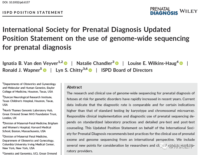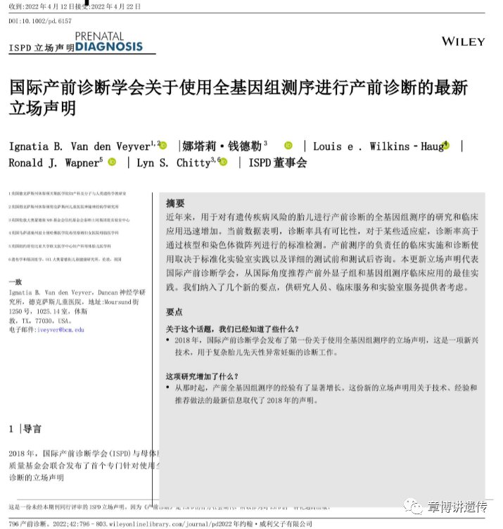 ISPD产前诊断基因组测序的最新声明—pES、检出率+31%、CMA不能少
