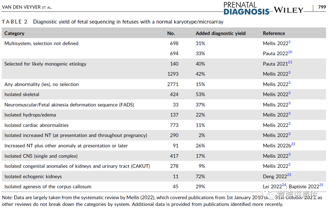 胎儿超声异常,且染色体核型、基因芯片(CMA)正常时,pES额外增加的阳性率约为31%。不同的超声异常行测序检测时,阳性率各不相同。单纯NT增厚时阳性率最低,仅增加2%;单纯肾脏泌尿系超声异常时,为9%。单纯骨骼异常时,检出率可增加53%。(别被数字给迷惑了,虽然单纯肾脏回声增强时检出率能达到72%,不过病例数较少,需要酌情参考;就我们经验而言,这块阳性率挺低的。另外,虽然仅仅NT增厚时,pES的检出率增加不多,才2%;但是考虑到后期出现其他超声异常、超声检查不慎漏掉其他异常等情况;做上pES也是应该的,毕竟NT+其他异常的额外检出率可以+26%)