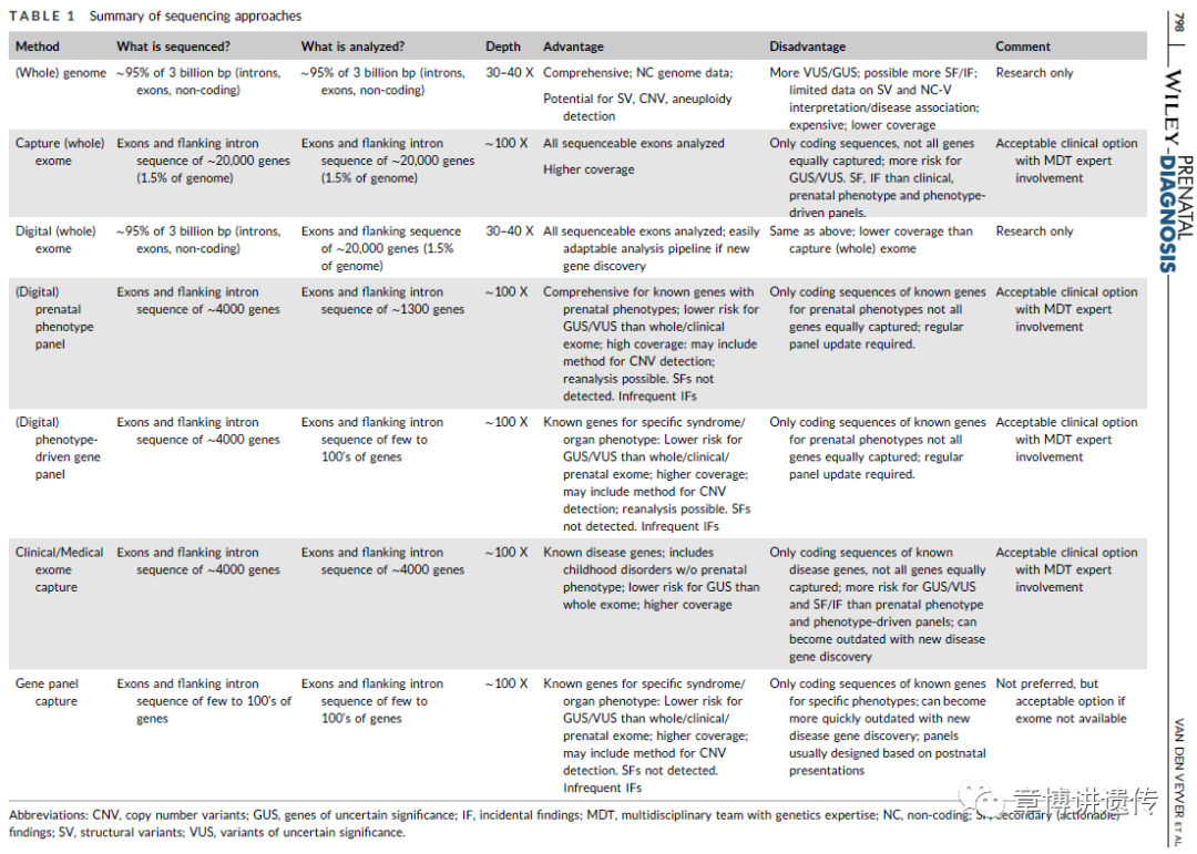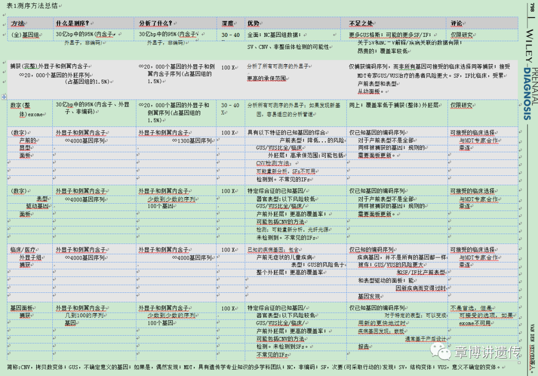产前诊断中的基因测序,依据测序范围和数据量的不同,有基因组测序(GS、genome sequencing)、外显子组(ES、exome sequencing)、临床外显子组(CES)、组合测序(panal)等,和产后儿童或成年人基因测序的命名方式一致。但是,因为产前诊断时分析方案与产后存在相当大的不同,一般都集中在产前诊断可分析基因范围内,方式也是产前特有的。所以,产前ES、GS等可以单独标注为pES、 pGS等、加以区分。(挺重要的一点,这样就能把产前、产后两种不同方案的ES分开了,交流沟通分析起来会容易很多,而且也为未来拓展做了准备。赞!)pGS虽然检测范围更广,阳性率更高,但是不好解释的不明确结果、偶然发现、意外发现也会多很多。所以现阶段,pES是应用最广泛的。