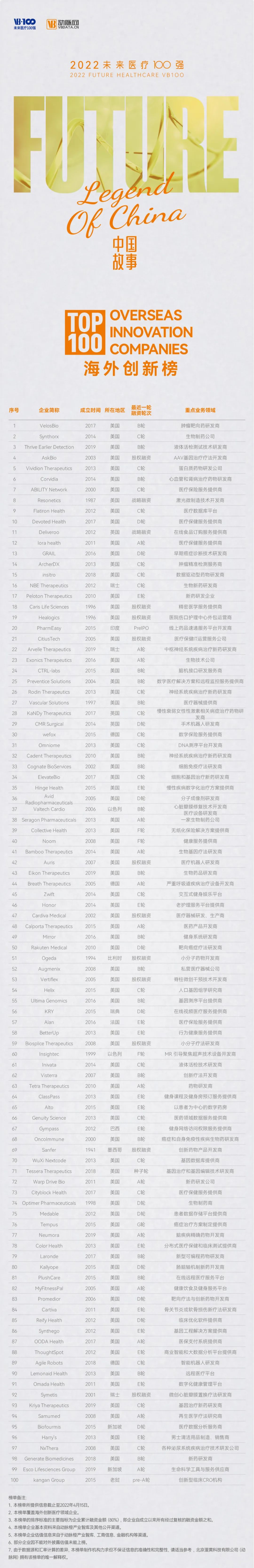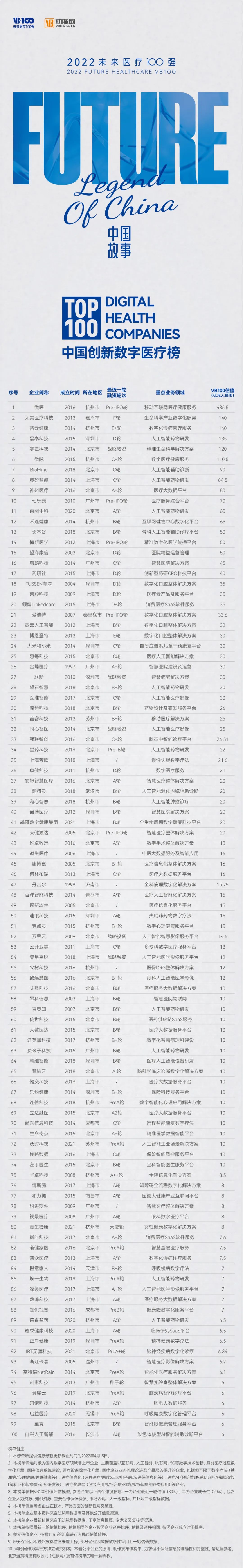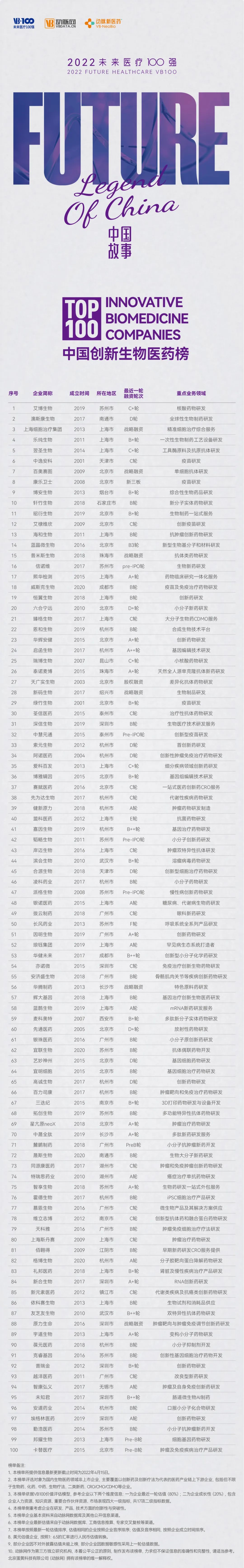 创立于2015年的未来医疗100强榜是由VB100、动脉网、蛋壳研究院推出的国内第一个针对非上市企业的创新医疗领域榜单,旨在遴选真正代表未来医疗的中国创新医疗者,发现我国未来医疗产业的核心力量,推动健康医疗产业的创新变革进程。七年来,未来医疗100强榜单体系不断丰富,逐步构建形成面向企业、投资机构、医院、产业园区的全球性创新医疗健康生态榜单,是目前生命健康领域最受产业界、资本界关注的年度评选。 此外,动脉网每年都会根据当年的未来医疗100强榜推出百强企业成长性报告。在2022年未来医疗100强榜单发布之际,再次推出《2022未来医疗100强企业成长性分析报告》,全面分析中国创新医疗服务榜、中国创新医疗器械榜、中国创新数字医疗榜、中国创新生物医药榜四大主榜企业相关数据。我们期望借助于对未来医疗100强榜上榜企业的分析,总结企业成长规律和产业变化趋势,为医疗健康企业和创业者提供参考借鉴。 2022未来医疗100强系列榜单下设未来医疗100强·主榜、未来医疗100强·价值领域榜、未来医疗100强·上市企业创新力排行榜,以及未来医疗100强·澎橙奖与蔚澜奖两大奖项。 本评选面向医疗健康领域非上市企业展开。评选以VB100价值评估模型为基础,通过企业自主申报、VB100评审会评审、支持机构交叉评审、专家委员会终审的流程,从4大领域(医疗服务/数字医疗/医疗器械/生物医药)中分别评选出估值排名TOP100的创新企业。估值之外,将重点考察候选企业在人力资源、知识资源、重要合作伙伴资源、市场表现四大一级指标,共17项二级指标数据上的成长性与年度表现。 声明:1、凡本网注明“来源:小桔灯网”的所有作品,均为本网合法拥有版权或有权使用的作品,转载需联系授权。2、凡本网注明“来源:XXX(非小桔灯网)”的作品,均转载自其它媒体,转载目的在于传递更多信息,并不代表本网赞同其观点和对其真实性负责。其版权归原作者所有,如有侵权请联系删除。 3、所有再转载者需自行获得原作者授权并注明来源。 最新评论相关分类图文热点 最新文章