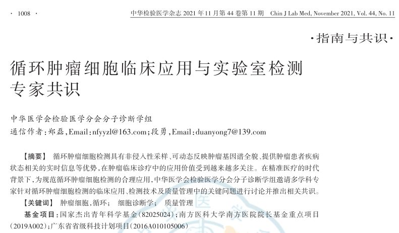 图18 2021年循环肿瘤细胞临床应用于实验室检测专家共识