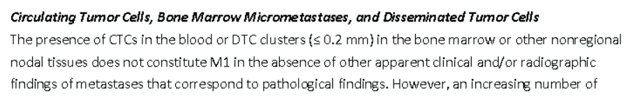 美国癌症联合委员会AJCC 2010年在乳腺癌中将一个新的M分期(cM0(i+) )引入到TNM分期系统中。它对cM0(i+) 的定义为: