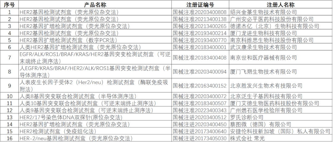 HER2 HER2 是具有受体酪氨酸激酶(RTK)活性的跨膜糖蛋白,属于表皮生长因子受体(EGFR)家族,又称表皮生长因子受体 2。国内检测该基因的获证产品见表7。