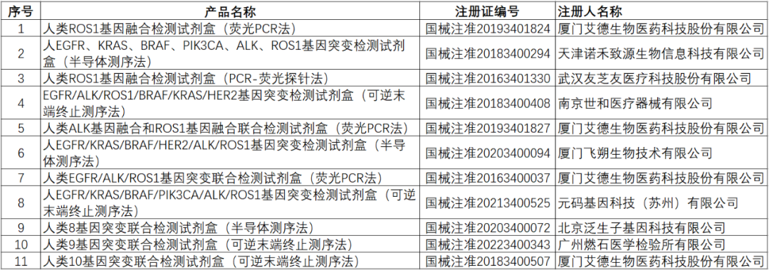 表 9 涉及ROS1基因的产品列表 NRAS NRAS基因是ras基因族的一个子成员,ras基因族主要表达ras蛋白和gap调控蛋白,该基因突变的NSCLC患者可能对 EGFR-TKI 原发性耐药。国内检测该基因的获证产品见表10。