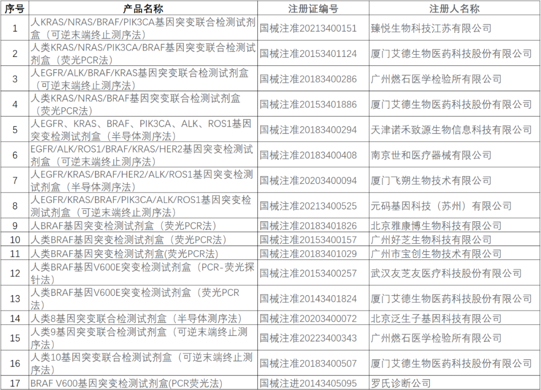 BRAF BRAF 基因编码 MAPK 通路中的丝苏氨酸蛋白激酶,主要突变类型为 V600E 位点突变。国内检测该基因的获证产品见表6. 表 6 涉及BRAF基因的产品列表
