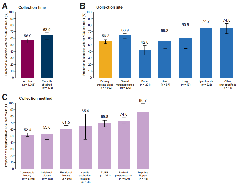 前列腺癌是一种常见而复杂的恶性肿瘤,严重威胁男性健康。全球范围内,前列腺癌占男性肿瘤年新发病例第二位,死亡原因第五位。初诊的前列腺癌大多对雄激素剥夺治疗(ADT)敏感,但随着病程进展,几乎都会进入预后较差的去势抵抗性前列腺癌(CRPC)阶段,尤其是转移性去势抵抗前列腺癌(mCRPC)。同源重组修复(HRR)是DNA双链断裂的重要修复途径,HRR相关基因突变会导至基因不稳定并促进肿瘤生长。研究显示,在mCRPC患者中,HRR基因突变大约占到20%-30%。既往研究提示PARP抑制剂在HRR突变的mCRPC中显示了抗肿瘤活性与安全性。 PROfound研究是第一个在前列腺癌领域利用分子分型指导靶向治疗的阳性结果Ⅲ期临床研究,不仅为PARP抑制剂在前列腺癌的治疗提供了有力的临床证据,也为前列腺癌的基因检测方法进行了全面的探索。尽管肿瘤组织样本是分子检测的金标准,但在临床诊疗中因为样本质控问题难以常规开展检测。临床上适合NGS分析的样本类型优选新鲜组织标本,也可选用FFPE样本、肿瘤细胞学样本及血浆(游离DNA/RNA)等。对于新鲜组织,可采用冷冻切片染色评估样本中的肿瘤细胞含量,对于FFPE样本,制作石蜡切片时,切取5片连续切片,其中1片进行HE染色评估肿瘤细胞的含量。除了样本组织类型,其他因素也会影响NGS结果。2022年发表在Clincal Cancer Research(IF:12.531)的一篇文章报道了PROfound研究中4000多名接受筛选的mCRPC患者肿瘤组织样本基因检测情况,讨论了真实世界中分子检测所面临的困局。 研究方法 研究纳入携带1-15个HRR基因突变、既往经二代抗雄激素药物(恩扎卢胺、阿比特龙)治疗进展的mCRPC患者。根据基因突变类型不同,分为两个队列。队列A患者至少携带BRCA1、BRCA2或ATM基因突变其中之一,队列B至少携带其他12个基因突变(BRIP1、BARD1、CDK12、CHEK1、CHEK2、FANCL、PALB2、PPP2R2A、RAD51B、RAD51C、RAD51D、RAD54L)其中之一。 研究结果 总结 PROfoud研究表明,基因检测来识别HRR基因突变是可行的。送检的样本会经过病理评估、DNA质量评估、测序质量评估等严格的质控步骤,每一步都会有一部分样本因质控不合格而无法获得NGS结果。样本储存年限、肿瘤纯度和DNA产量是影响NGS结果的三大要素。如果有多个样本,当这些样本的肿瘤纯度相近时,则考虑选择较新鲜的样本。对于储存年限超过5年的样本,则考虑使用肿瘤纯度最高的样本,或者样本来源为淋巴结等肿瘤细胞含量较高的组织。对于新收集的样本,使用福尔马林固定和避免脱钙处理(对于骨组织样本)有助于保持核酸的完整性。高质量的肿瘤组织样本是获得NGS结果和筛选可能从奥拉帕利治疗中获益的mCRPC患者的关键。 裕策生物NGS检测质控流程 目前NGS检测的样本来源主要为组织、细胞、体液,收集的样本需经过前处理、核酸提取、核酸质控、文库构建、文库测序、数据分析等步骤。裕策生物旗下深圳裕康医学检验实验室(以下简称:裕康医学实验室)有着严格的质控标准,曾在多次室间质评中获得国际认可。 近日,裕康医学实验室病理图像判读水平获得CAP认可,为患者提供准确客观的病理诊断结果,从而使更多肿瘤患者能够获益,为精准诊疗保驾护航。 裕策生物NGS检测流程 CAP NEO-A 2022成绩单 |