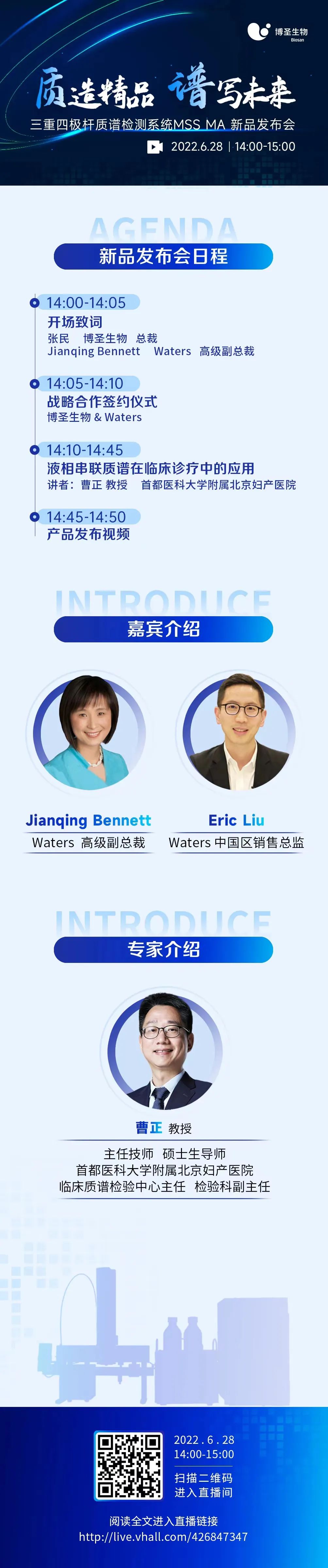 博圣生物三重四极杆质谱检测系统(MSS MA)线上新品发布会将于2022年6月28日14:00-15:00盛大举行!国产液相色谱串联质谱仪又添新选择。