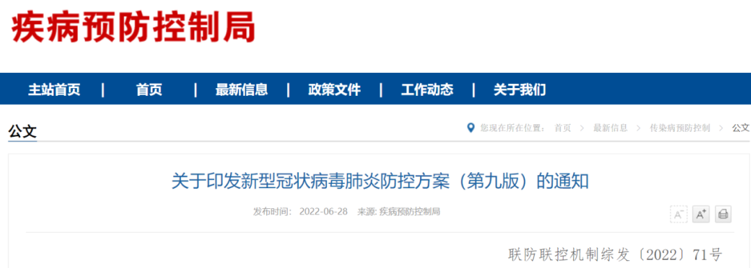 | 6月28日,国务院应对新型冠状病毒肺炎疫情联防联控机制综合组制定发布了新型冠状病毒肺炎防控方案(第九版),这是针对奥密克戎变异株传播速度快、隐匿性强等特点,总结我国防控工作实践的基础上,进一步指导全国各地科学精准做好新型冠状病毒肺炎防控工作的重要文件。文件精神依然是全面落实“外防输入、内防反弹”总策略和“动态清零”总方针,统筹疫情防控和经济社会发展。 与之前的版本相比,本次方案的主要修订内容如下: 将密切接触者、入境人员隔离管控时间从“14天集中隔离医学观察+7天居家健康监测”调整为“7天集中隔离医学观察+3天居家健康监测”,核酸检测措施从“集中隔离医学观察第1、4、7、14天核酸检测,采集鼻咽拭子,解除隔离前双采双检”调整为“集中隔离医学观察第1、2、3、5、7天和居家健康监测第3天核酸检测,采集口咽拭子”,解除集中隔离医学观察前不要求双采双检。密接的密接管控措施从“7天集中隔离医学观察”调整为“7天居家隔离医学观察”,第1、4、7天核酸检测。 将两类风险区域划定标准和防控措施进行衔接对应,统一使用中高风险区的概念,形成新的风险区域划定及管控方案。高风险区实行“足不出户、上门服务”,连续7天无新增感染者降为中风险区,中风险区连续3天无新增感染者降为低风险区。其他地区对近7天内有高风险区旅居史人员,采取7天集中隔离医学观察措施。中风险区实行“足不出区、错峰取物”,连续7天无新增感染者降为低风险区。其他地区对近7天内有中风险区旅居史人员,采取7天居家医学观察措施。低风险区指中、高风险区所在县(市、区、旗)的其他地区,实行“个人防护、避免聚集”。其他地区对近7天内有低风险区旅居史人员,要求3天内完成2次核酸检测。 加密风险职业人群核酸检测频次,将与入境人员、物品、环境直接接触的人员核酸检测调整为每天1次,对人员密集、接触人员频繁、流动性强的从业人员核酸检测调整为每周2次。增加抗原检测作为疫情监测的补充手段,基层医疗卫生机构对可疑患者、疫情处置时对中高风险区人员等可增加抗原检测。 |