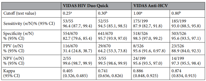 VIDAS HIV Duo Quick和Anti-HCV检测DBS样本中HIV和HCV抗体的性能统计图片来源:Scientific reports