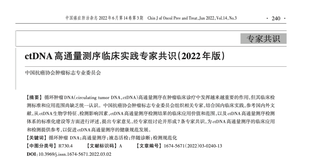 近日,由中国抗癌协会肿瘤标志专业委员会组织,重庆市中医院辇伟奇教授、天津医科大学肿瘤医院于津浦教授、华中科技大学同济医学院附属同济医院袁响林教授、重庆大学附属肿瘤医院张海伟教授担任编写组长,全国医院和行业知名企业专家共计五十余人参与筹备和撰写的《ctDNA高通量测序临床实践专家共识》(2022年版),正式刊登于《中国癌症防治杂志》,鼎晶生物医学总监夏超然博士参与了本共识的编写工作。共识的主要内容包括:ctDNA定义概述,临床应用,检测标准三部分内容。 图1. c t D N A 高 通 量 测 序 临 床 实 践 专 家 共 识(2 0 2 2 年 版) ctDNA(circulating tumor DNA,ctDNA) 通常由肿瘤细胞主动分泌或在肿瘤细胞凋亡或坏死过程中释放入循环系统中的DNA片段,长度132~145bp,半衰期较短(一般<2h)。因其无创或微创、检测时间短、能够反映瘤内和转移灶异质性、可动态监测治疗疗效等优势而在临床得到越来越广泛的应用。ctDNA会携带来源于肿瘤细胞相关的遗传学特征,如基因突变、甲基化、扩增或重排等,可作为肿瘤筛查、伴随诊断、治疗疗效评估及预后风险分层的重要指标。然而,其丰度受多种因素影响,波动较大,在内外因素特别是治疗压力下,其携带的生物信息可能会发生演变,且受正常细胞胚系变异或克隆性造血细胞体系突变干扰,在临床检测和报告解读过程中应特别注意。 ctDNA NGS检测的临床应用 01 伴随诊断 目前已有临床证据支持ctDNA NGS检测可应用于肺癌、乳腺癌、前列腺癌、卵巢癌等晚期实体肿瘤的伴随诊断,但涉及的驱动基因及其变异类型与相应分析体系均有严格限定,若超适应症应用时,建议与患者就检测必要性、检测费用以及局限性等内容进行充分知情。ctDNA NGS检测已被国内外专家共识或指南建议作为多种晚期恶性肿瘤(包含如胃食管腺癌 、NSCLC 、乳腺癌、转移性胰腺癌、皮肤性黑色素瘤等 )组织基因检测的替代方式,但依据其分析结果实时制定临床治疗策略时仍需高级别循证证据支持。 02 评估肿瘤治疗疗效及预后风险分层 采用肿瘤标志物和影像学等传统方法评估分子靶向和免疫检查点抑制剂治疗疗效时,无法动态反映肿瘤特征性的分子演化,ctDNA NGS检测可对肿瘤驱动基因相关ctDNA的丰度变化进行监测,判断肿瘤治疗应答,其有望成为新兴的疗效评估途径。 微小残留病灶(minimal residual disease,MRD)概念最早来自血液肿瘤。实体肿瘤的 MRD 概念更多被称为分子残留病灶(molecular residual disease,MRD),是指经过治疗后,传统影像学(包括 PET/CT)或其他实验室方法不能发现,但通过液体活检发现的肿瘤来源分子异常,代表肿瘤持续存在和临床进展可能.ctDNA是评估MRD的一种非侵入性工具。现已有多项研究表明术后ct DNA阳性与疾病复发之间的强相关性,术后的ctDNA分析结果可作为预后预测依据。ctDNA MRD检测是全新的个性化技术应用领域,尚难以建立通用性技术标准,亟待通过大样本、多中心、前瞻性的临床试验验证其临床效用。 03 助于肿瘤获得性耐药机制分析 在临床环境中,ctDNA NGS检测可用于识别分子靶向治疗的耐药机制,尤其对于疑难复杂的肿瘤患者,该结果有助于后续的治疗选择决策。免疫检查点抑制剂治疗获得性耐药机制复杂,治疗选择压力下的肿瘤亚克隆演进仅为其部分原因,ctDNA靶向测序、全外显子和 (或)全基因组检测仅作为其转化研究工具之一。 ctDNA NGS检测标准 ctDNA NGS检测的建立与优化涉及分析前、分析中以及分析后的三个阶段多个步骤,实验室质量管理需贯穿 ctDNA NGS检测的整个流程。收集、样本处理和自动化过程应按照标准化和临床验证程序进行,最大程度防范因操作差异而引发的假阴性可能。样本采集建议采用含细胞稳定剂的抗凝管(如Streck采血管等游离核酸专用采血管)尽快完成血浆分离,提取的 cfDNA建议在24h内进行后续检测,否则,置于-30°C至-15°C下储存并避免反复冻融。ctDNA NGS检测应根据项目需求选择技术路线,可依据检测基因数量及覆盖范围大小选择不同测序策略。在进行基于 ctDNA的超高灵敏度突变检测时,建议使用分子标签技术和优化对应的生物信息分析设置,以降低由于测序平台随机误差导至的假阳性结果;建议通过建立测序噪音和克隆性造血背景库的方法降低克隆性造血及背景噪音带来的影响。 ctDNA NGS临床检测报告应包含受检者基本信息、样本信息、实验室信息、检测项目、检测结果及变异解读、检测方法的实验室内部验证结果、检测局限性及不确定性以及进一步检测的建议等内容。实验室应建立报告 SOP,建议根据国内外文献、共识指南、临床试验证据和实践对检出的肿瘤基因突变进行分类或分级报告。 临床研究表明,基于ctDNA NGS检测的bMSI(blood MSI)和bTMB (blood TMB)具有免疫检查点抑制剂疗效预测价值,但仍有诸多因素影响其在临床中的应用,如样本采集时间、检测panel基因覆盖范围、panel 大小、测序深度、生信算法及阈值设定等,未来还需开展更多的前瞻性临床研究。机器学习等人工智能算法不仅能降低假阳性、提高灵敏度,还能有效整合多维度的异质信息进行全面分析,大幅提高ctDNA数据效力,是ctDNA数据分析的主要方向。 本文编辑:Peng |