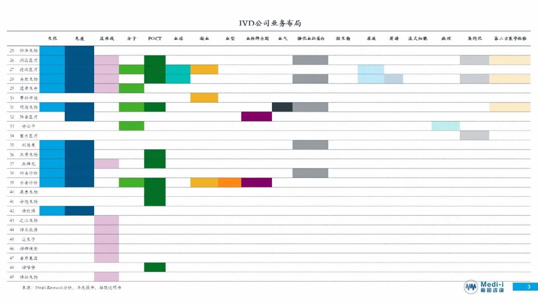 26 润达医疗 润达医疗作为国内医学实验室综合服务商,以信息化、数据化技术为支撑,为各类实验室(主要为医院的检验科,又称临床实验室,还包括第三方医学实验室、体检中心、疾控中心和血站等其他医疗单位所属的医学实验室)提供体外诊断产品、技术服务支持、实验室运营管理等全方位的综合服务。同时以体外诊断产品研发生产、医疗信息化系统开发、第三方实验室检测等产业链延伸业务为补充,形成独特的综合性IVD业务服务体系。 公司主营业务包括两大板块:商业服务板块和工业板块(IVD产品研发生产业务、医疗信息化业务)。公司两大板块业务互为补充,有效地满足了各级实验室的综合服务需求。 目前公司商业服务板块业务类型包括三大类:传统的IVD代理经销业务,创新的集约化业务及区域检验中心业务,第三方实验室业务。 公司积极布局上游IVD生产制造领域,目前有惠中医疗、惠中生物、北京惠中、上海昆涞等生产研发类子公司,对IVD部分领域产品进行了差异化布局,自主品牌产品覆盖质控、糖化、化学发光、生化、分子诊断、POCT等领域。 针对医学实验室的运营管理特点,公司开发了一系列拥有自主知识产权的检验领域信息化软件系统平台,包括LIS系统(医学实验室信息系统)、BIS系统(临床输血质量管理系统)、POCT质量管理平台、SIMS系统(实验室试剂库存管理系统)、Mai47系统(医疗供应链协同云平台)、ISP系统(仪器服务平台)、CCLS(冷链物流系统)、DAP(数据融合平台)等,为客户提供了丰富的信息化系统及相关软件服务。同时,公司也积极对临床信息化业务产品线进行拓展及升级,积极开展区域性信息平台的搭建,进一步丰富公司信息化产品线,巩固了公司在检验领域信息化系统开发建设的领先水平。 2020年公司实现营业收入70.69亿元,同比增长0.24%,其中商业服务板块实现收入66.48亿元,同比减少1.74%,工业板块实现收入4.14亿元,同比增长47.74%,较好的达成了经营目标。公司实现归属上市公司股东净利润3.30亿元,同比增长6.61%,公司盈利能力持续稳步提升,综合毛利率保持稳定。 2020年公司集约化业务/区域检验中心业务实现营业收入20.87亿,较上年略有增长,截至2020年12月31日,公司集约化/区检中心客户数达378家。工业板块包括IVD产品研发生产业务和医疗信息化业务,2020年工业板块实现营业收入4.14亿元,同比增长47.74%。其中,IVD产品研发生产业务实现营收3.06亿元,同比增长20.53%;医疗信息化业务实现营收1.08亿元,同比增长313.03%(2019年10月上海瑞美纳入合并范围)。 公司下属的两家第三方实验室上海中科润达及黑龙江龙卫2020年实现营业收入1.57亿元,较上年同期增长251.43%,主要系新冠核酸检测业务带来的业绩增量和常规检测业务的逐步恢复。 公司自主品牌业务销售渠道的拓展及现有集约化和区检业务的协同作用带动了工业板块的业务收入增长。 公司能从在新冠疫情和医改政策逐步推进的外部条件下依然保持着正向的内生动力和稳定的盈利水平,主要基于: 1)业务结构优化所带来的业务规模和抗风险能力提升。 2)多元化服务所带来的业务协同和服务黏性增加。
