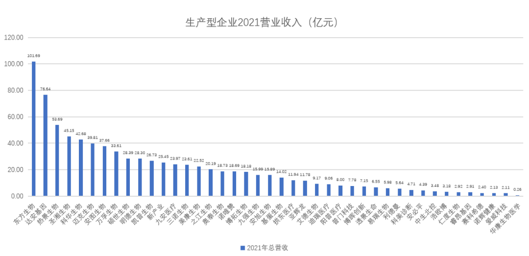国内主营体外诊断业务上市企业2021年营业收入分析
