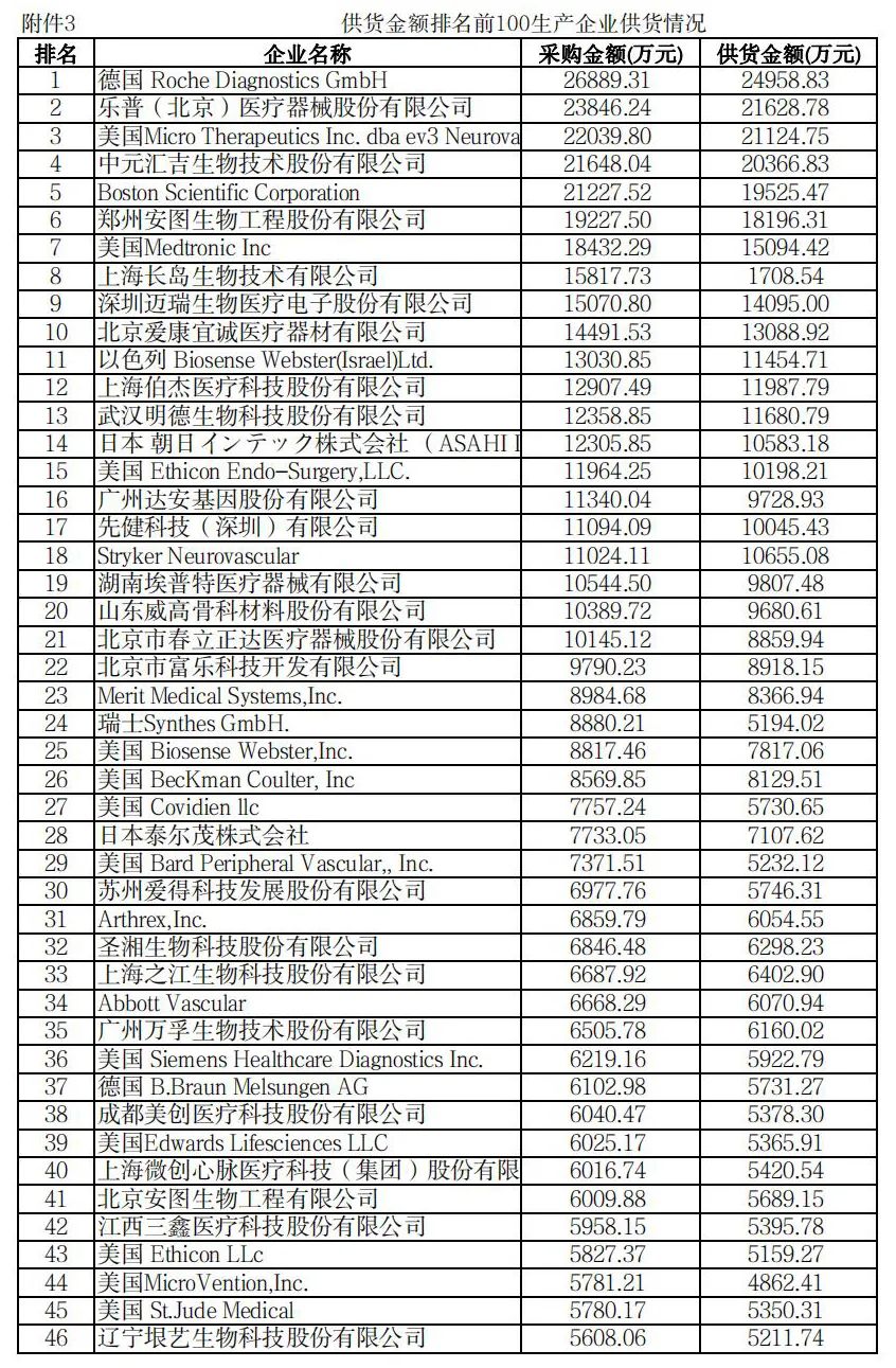 值得一提的是,随通知一同公布的还有河南省耗材试剂供货金额排名前100生产企业供货情况,罗氏依旧稳居第一。