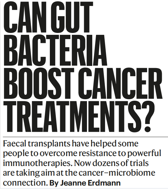 近日,在顶刊Nature杂志上发表了一篇题为“Can gut bacteria boost cancer treatments?”的文章,文章讲述了粪便移植的理念和开创性临床试验,并且梳理了粪便移植的发展过程和正在进行的临床试验,可能遇到的困难以及发展方向。粪便移植帮助一些人克服了对强大免疫疗法的抵抗,现在有数十项试验针对癌症与微生物组的联系。 图片来源:Nature 01 粪便移植 大约五年前,利维被诊断出患有黑色素瘤,但多亏了一种名为nivolumab的强大免疫疗法,他才得以康复。由于他对该药物反应良好,以色列Sheba医疗中心的医生询问他是否会考虑捐献粪便——以及粪便中的微生物——以帮助其他没有反应或癌症已对治疗产生耐药性的患者。他同意接受严格的测试、抽血和关于他吃得最多的食物(披萨)的详细问题。利维捐献了粪便,把粪便装进冰箱,然后叫了一辆医院雇来的出租车。与任何移植一样,时间至关重要。医生希望样本在90分钟内到达。 到达那里后,对利维的粪便进行病原体测试,将其稀释、均质、离心并过滤成精制的微生物混合物,冷冻干燥后装入胶囊中。Levy对该项目的热情使领导该研究的Sheba医学中心的肿瘤学家Ben Boursi分享了一位微生物接收者的匿名扫描结果。如今,这个人已经三年多没有癌症证据了,并且在一项类似的黑色素瘤治疗试验中成为了捐赠者。 如今,由学术实验室和制药公司进行的至少30项FMT试验正在全球范围内进行。 越来越多的研究表明,肠道微生物群可以对远处肿瘤的进展、治疗的副作用以及免疫系统清除癌细胞的能力产生好或坏的影响。一些研究将特定细菌与有益效果联系起来,这可能指向量身定制的治疗方法。科学家们正在探索饮食和肠道微生物多样性的作用,以及揭示肠道内生物体与肿瘤中生物体之间的相互作用,这可能为治疗开辟新的靶点。这种方法可以打开“生态肿瘤学时代”的大门,可以更好地了解肿瘤、宿主、免疫系统和常驻微生物将导至更好的治疗。 粪便移植。图片来源:Nature 02 开创性试验 2016年,微生物组作为一种可改变的生物体在健康和疾病中开始出现,与癌症的联系开始受到关注。这一趋势与人们对免疫治疗的兴趣激增相吻合。免疫治疗药物在许多类型的癌症中都取得了显著的成功,但并不是对每个患者都有效——只有15%-20%的人有长期的反应。 支持微生物对这些治疗成功或失败的影响的数据开始在癌症会议和顶级杂志上堆积起来。伊利诺伊州芝加哥大学在2015年经常提到的一项研究表明,小鼠肠道微生物的平衡决定了啮齿动物是否对某种类型的免疫治疗有反应。2018年的三篇论文,介绍了使用检查点抑制剂治疗黑色素瘤患者的结果。而肠道中某些关键微生物的存在或缺失似乎会影响反应的可能性。 不久,世界各地的研究人员开始进行FMT临床试验。 UPMC和国家癌症研究所进行的美国试验招募了16名转移性黑色素瘤患者,他们的癌症在免疫治疗后进展。该试验使用了七名对黑色素瘤免疫治疗有持久反应的捐赠者。在16名受试者中,6名有反应,其中3名完全反应,尽管没有明确迹象表明任何一名供者的粪便或多或少有积极影响。 科学家们仍然不知道“好大便”意味着什么,关于哪些微生物最重要,不同的研究结果相互矛盾。研究人员需要研制出一种秘密酱汁,这种酱汁是一种具有良好功能品质的菌群,可以促进免疫力和整体健康。但找到最佳组合可能是不可能的,微生物群的组成因种族、地理和饮食而有很大差异。 加拿大一个研究小组最近的研究使用了来自未患癌症的捐赠者的FMT,以测试它是否可以预防未接受过免疫疗法的人对免疫疗法的耐药性。这项加拿大范围的研究招募了20名晚期黑色素瘤患者。在FMT和免疫治疗后,3人显示完全缓解,13人部分缓解,3人显示疾病稳定(一名参与者死于黑色素瘤)。这个结果暗示了基于微生物组的治疗能够提高免疫治疗效果的早期信号。 03 操纵复杂的生态系统 确定捐赠的理想粪便可能不是它含有哪些微生物,而是它们的作用。观察细菌产生的代谢物对于表征治疗至关重要。 另一个需要考虑的问题是肿瘤本身的微生物组。微生物约占肿瘤环境的25%,它们的存在可以促进或阻断抗肿瘤免疫。过去几年的研究表明,肿瘤中的微生物可以介导对化疗的耐药性。研究人员还发现了位于肿瘤细胞内的特定细菌。 根据癌症的不同,微生物会从许多区域进入肿瘤,包括肠道、口腔和血液。研究人员现在开始关注肿瘤微生物和肠道微生物之间的串扰,以了解它们是否以及如何相互影响。 一些研究开始揭开复杂性的面纱。2019年的一篇细胞论文研究了来自长期生存的胰腺癌患者的FMT能否延缓胰腺癌小鼠的肿瘤生长,并增强其免疫细胞。从长远来看,该研究将分析FMT改变肠道微生物是否会直接改变肿瘤中的微生物。但还没有解决的是饮食对微生物群移植的影响程度。世界各地的流行病学研究表明,饮食对肠道微生物群的影响甚至比人类基因的影响更大。食用高纤维饮食的黑色素瘤患者更有可能对免疫治疗产生积极反应,而非处方益生菌与更差的结果相关。 癌细胞和细菌共培养。图片来源:Nature 04 缓解毒副作用 2017年,安农·沙尼被诊断出患有恶性黑色素瘤后,他自愿参加了一项临床试验,测试免疫检查点抑制剂彭布罗利珠单抗,彭布罗利珠单抗是一种抗体,可使癌细胞用来躲避免疫细胞的蛋白质失活。几乎