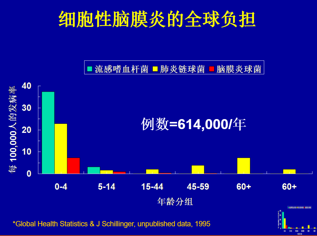 数据2:据美国CDC的数据,亚洲人群的脑膜炎球菌性疾病发病率约为1-3/10万,全球细菌性脑膜炎的全球负担是61,4万/年,这是1995年的数据。