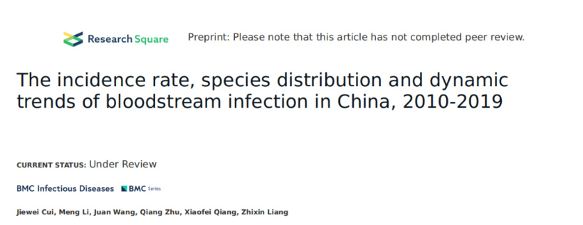 目前我们国内比较缺乏这块的数据,我找了好久终于找到一篇文章,中国人民解放军总医院的梁志新教授等在Research Square预先发表了一篇题为The incidence rate, species distribution and dynamic trends of bloodstream infection in China, 2010-2019的文章。
