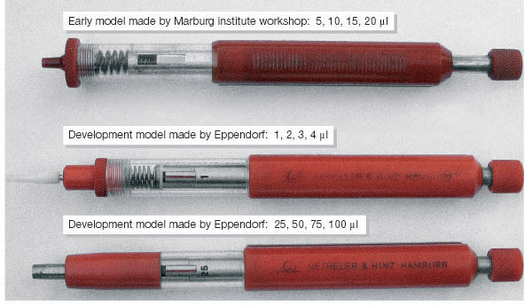 在海因里希发明移液枪的时候已经想过了要配套一次性枪头,当时他尝试用特氟龙为原料制作枪头但是效果不佳。买断移液枪专利之后Eppendorf的工程师威廉·伯格曼用聚丙烯替代特氟龙,发现效果奇佳。之后,能换枪头的移液枪和自带卡扣式帽子的EP管这一组合风靡全球的实验室。而迷你离心机的加入使之成为实验室标配“铁三角”将是我们下下次的故事。