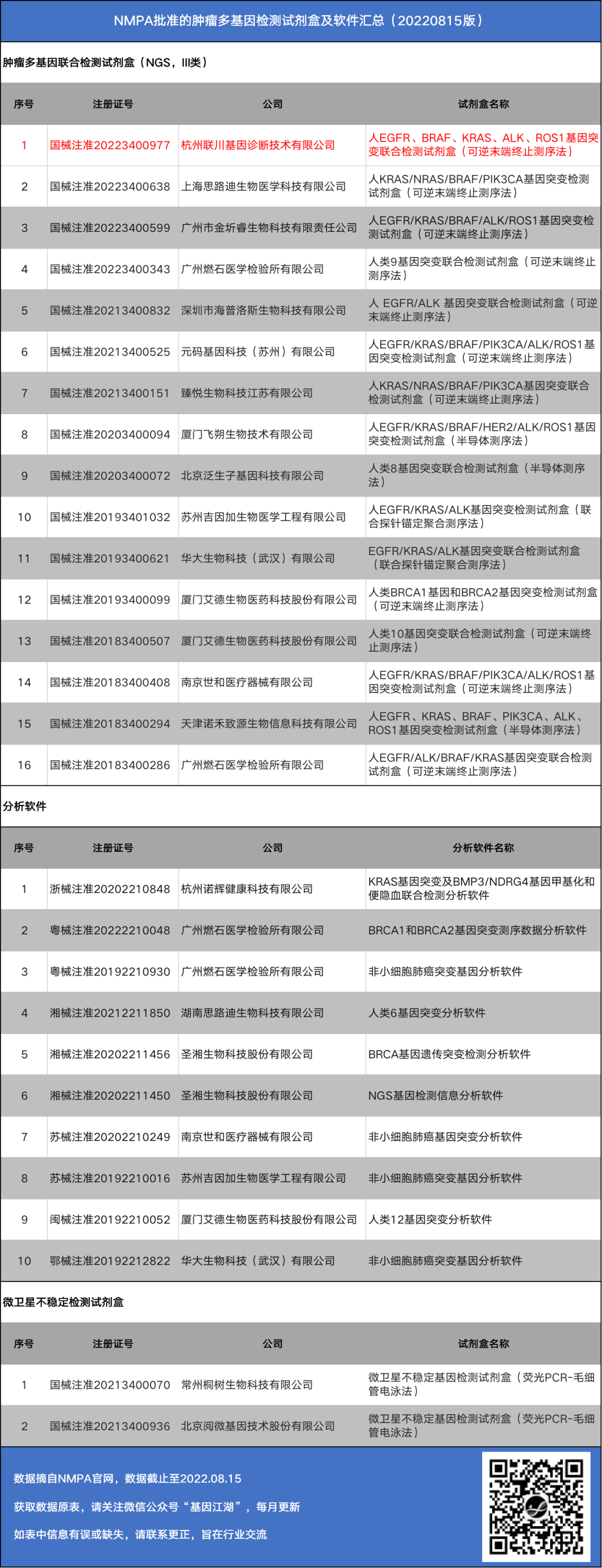 NMPA获批NGS产品合集(2022年8月15日更新)