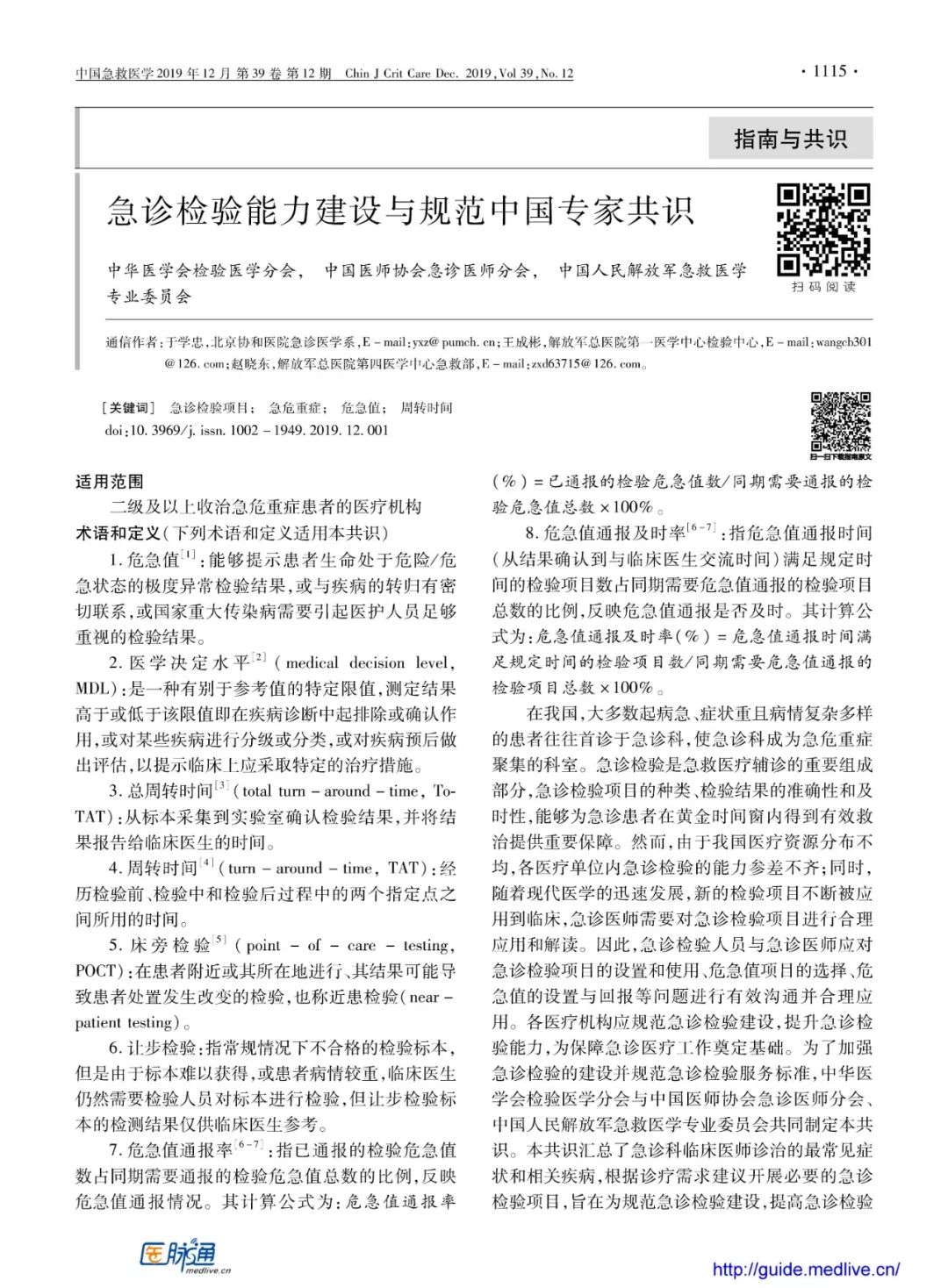 本文发表于《中国急救医学》2019年12月第39卷第12期,版权归专家共识组。