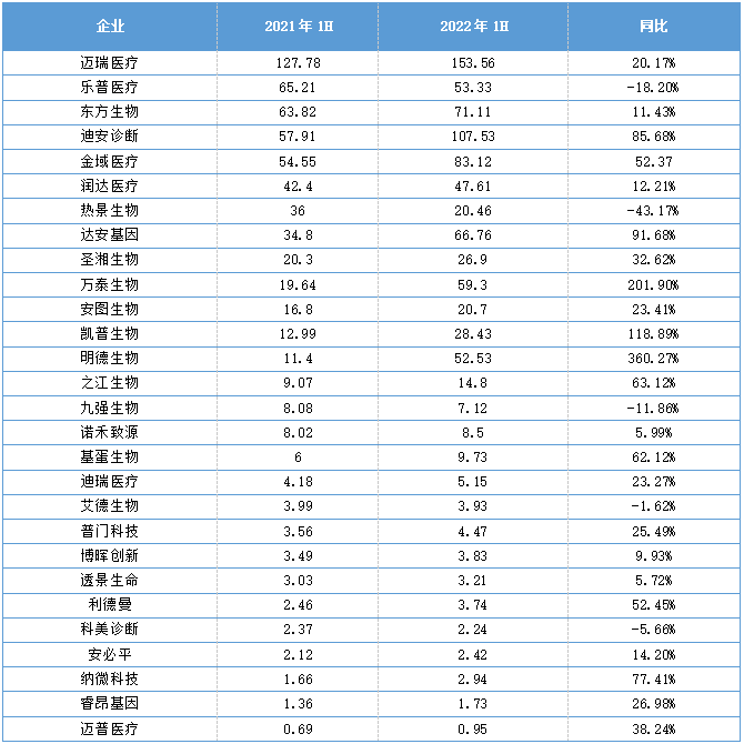 2022年各IVD企业半年报分享