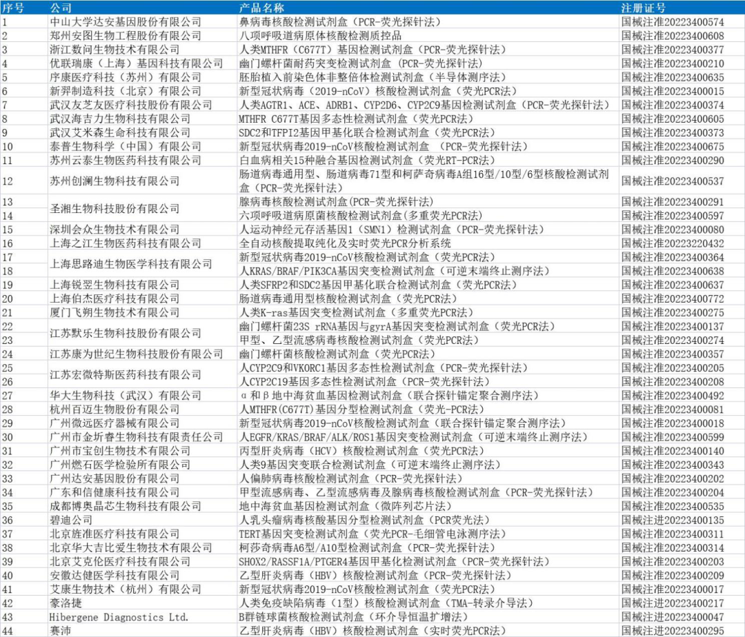 2022年上半年NMPA份获批分子诊断试剂简列