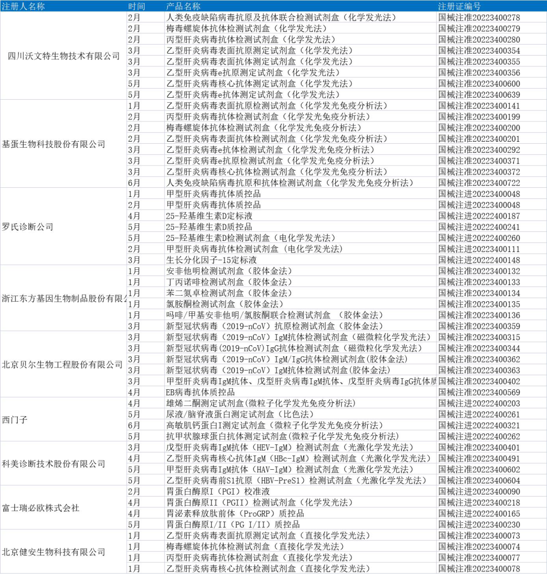 2022年上半年NMPA份获批免疫诊断试剂简列