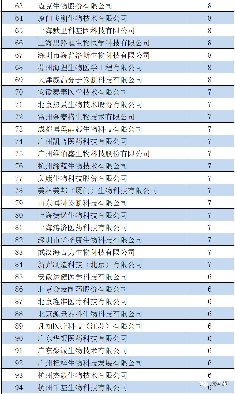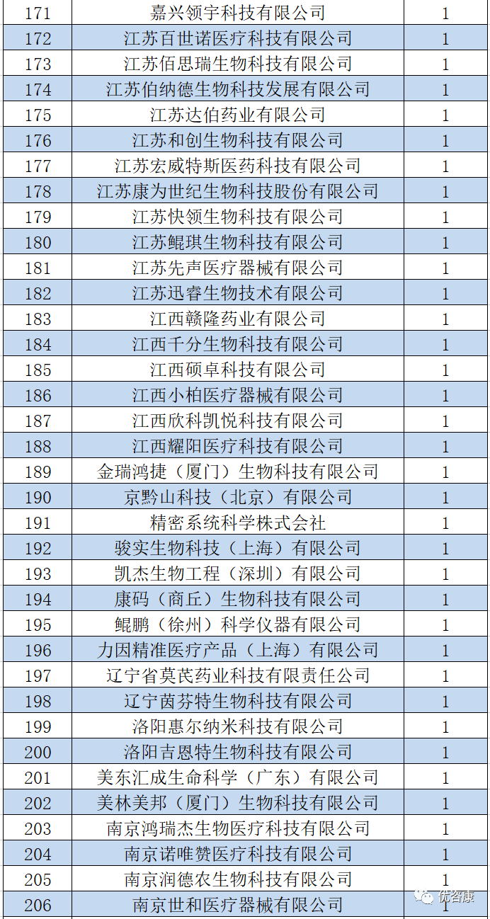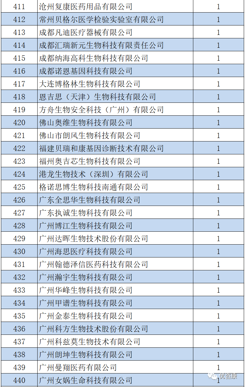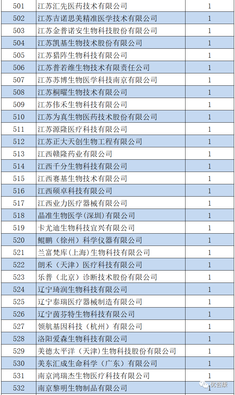 核酸检测领域为IVD领域的核心重要组成部分,近年IVD热门赛道像伴随诊断、用药指导、肿瘤筛查、肿瘤辅助诊断、病原微生物检测等绝大多数产品都涉及核酸检测,像PCR、NGS、恒温扩增及数字PCR等技术都是需要进行核酸提取的,大约98%以上的核酸检测产品是需要单独进行核酸提取/纯化的(经验数据估计)。 截止到2022年8月12日(下同),获证(备案)的核酸提取类产品有2960款,根据其用途可以分成两大类:核酸提取试剂(2459款)和核酸提取仪器(501款)。布局核酸提取仪的公司中,有56.6%的公司同时在布局核酸提取试剂;布局核酸提取试剂的公司中,有24.1%的公司同时在布局核酸提取仪。 随着软硬件及原材料的快速发展,现在越来越多的核酸提取试剂盒可以采用仪器进行提取,目前,获证的核酸提取类仪器有501款:涉及293家境内公司,境外公司18家(不含提取扩增的仪器)。获证数前3的公司为:上海之江(12款产品)、台湾圆点(11款产品)、广东凯普(10款产品),具体数据见表1。 表 1 核酸提取仪器公司 结合核酸提取试剂的数据,有56.6%的核酸提取仪公司也在布局提取试剂。 获证公司主要集中在经济发达省份/地区,其中,广东、江苏、山东、浙江和上海是排前五名的省份(注:台湾省按境内公司统计),占总数的63.3%,具体数据看图1。 图 1 核酸提取仪器公司分布 产品年度批准情况见图2。从2014开始,核酸提取仪逐渐变多,这与IVD产品的大趋势是一致的:减少手工操作。 图2 产品年度获批情况 备注:产品年度按注册证编号前4位统计,有些产品的年度和获批年度可能不一致。 目前,核酸提取试剂以单独形式存在占绝大多数,含在三类试剂盒的极少。目前,获证的核酸提取试剂共有2459款,涉及705家境内公司,境外公司26家。境内公司获证数靠前的5家公司为:厦门致善(56款产品)、成都新百基(46款产品)、广州达安(39款产品)、上海之江(37款产品)和江苏康为世纪(36款产品),具体数据见表2。