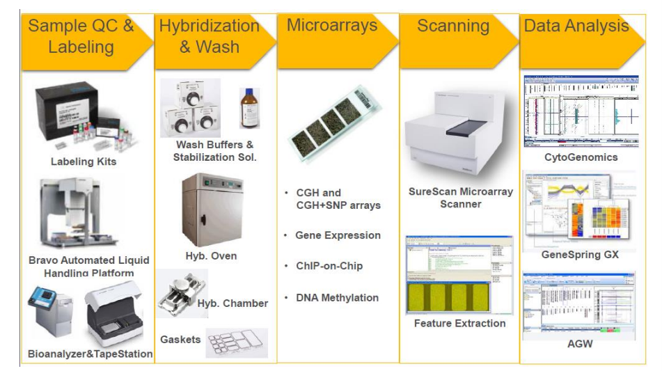 根据Medii Research预测:到2025年,中国分子诊断市场规模约为245亿,其中基因芯片市场会进一步萎缩,市场占比从16%下降到10%,市场份额则进一步萎缩约为25亿元。主要是受限于基因芯片的应用场景、dPCR技术与基因测序等新技术的挤压。 2019年-2025年分子诊断各细分市场规模分析 各种分子诊断技术概览 在生物芯片技术中, 基因芯片技术建立最早, 也最为成熟。基因芯片, 又称DNA微阵列(DNA microarray), 是把大量已知序列探针集成在同一个基片上, 经过标记的若干靶核苷酸序列与芯片特定位点上的探针杂交, 再通过检测杂交信号,对生物细胞或组织中的基因信息进行分析。1991年Stephen Fodor博士首次 提出基因芯片的概念,决定将硅技术与生物学技术融合在一起, 借助半导体技术进行芯片研制, 解读生命有机体在长期进化中累计下来的浩瀚基因信息。美国Affymetrix 生物公司于1996年制造出世界上第一块 商业化的基因芯片。 基因芯片微阵列技术 基因芯片的医学应用有其独特的优势:快速、 高通量。例如在临床诊断方面:仅用极小量的样品,在极短时间内,向医生提供大量的疾病诊断信息。在新药研发方面:可以从疾病及药物两个角度对生物体的多个参量同时进行上万个样品的检测,高效发现和选择合适的药物靶点。但是,基因芯片因为技术特殊性,依然有很多限制因素,技术门槛高、成本高、临床应用场景有限。该技术的把控者主要还是进口品牌,例如赛默飞、因美纳以及安捷伦等。同样因为成本高,以产前诊断为例,每次产前诊断检测费用在2000-3000元。 基因芯片在临床应用场景分析 药物筛选和新药开发:用作大规模的筛选研究可以省略大量的动物试验甚至临床,缩短药物筛选所用时间,提高效率,降低风险。 疾病诊断及治疗:通过基因芯片提供的诊断病理信息,医生能够更好地有的放矢,患者提供个性化诊疗方案。 病原体快速诊断:通过对病毒基因组的全部序列快速监测,可以有效地对病毒携带者进行快速准确的筛查。 产前诊断,可在婚前、孕前、孕早期以及孕中通过父母双方或者孕妇羊水进行基因检测,优生优育。 因为基因芯片的特殊性,所以目前在临床上取得NMPA证书并不多,特别是高通量基因芯片,仅有芯片分析系统是有获得NMPA证书的。现在,世界上主流的芯片制造商有3家,分别是Affymetrix,Agilent以及Illumina,这三家在芯片生产过程、探针长度以及通量上各有不同。国内基因芯片行业起步晚,但是在前期国家政策扶持下,陆续也有一些企业进入这个行业,玩家有博奥生物、伯豪生物等。 NMPA获批芯片扫描系统 NMPA获批芯片试剂产品 产前诊断是基因芯片在临床最为成熟市场之一。产前诊断是指对胎儿进行先天性缺陷和遗传性疾病的诊断,主要是在胎儿出生前采用各种方法,有针对性地进行诊断手术或检测,监测、检测胎儿的健康状况,发现患病胎儿,并通过宫内治疗等技术手段,降低严重致残致畸缺陷儿的出生,达到优生目的。 产前诊断各种分析技术概览 目前,在临床上使用主要是染色体微阵列芯片技术(CMA),基于设计原理的不同,基因芯片主要有两大平台:一种是比较基因组杂交芯片(aCGH),其基于原理是将待测样本DNA与正常对照样本DNA分别用不同的荧光标记,通过与芯片上固定探针进行竞争性杂交获得定量的拷贝数检测结果;另一种是单核苷酸多态性微阵列芯片(SNP array),其基本原理是将探针连接在微珠上,然后将携带探针的微珠随机粘附在芯片上,待测样本DNA和探针进行杂交及单碱基延伸,通过对荧光信号扫描,分析待测样本拷贝数变异及基因型,该平台在分析患者的基因组时不需要正常对照样本。 基于比较基因组杂交的微阵列芯片(aCGH) 基于单核苷酸多态性的微阵列芯片(SNP-array) 赛默飞 美国Affymetrix公司是目前全球基因芯片行业的领头羊,以其专利的寡聚核苷酸原位光刻合成技术,年产各类寡聚核苷酸基因芯片达到几十万张,占据了表达谱基因芯片科研市场的一半以上,经过了将近十年的研究和开发,已经在国际上赢得了很高的盛誉,同时也成为为数极少的已经盈利的生物芯片公司。Affymetrix公司的基因芯片为寡核苷酸芯片(Oligo芯片),这种类型的芯片具有极高的特异性和灵敏度,重复性好,假阳性率非常低,是目前世界上最先进的基因芯片。 赛默飞基因芯片解决方案概览 GeneChip System (GCS) 3000Dx v.2 是临床研究最可靠的平台,也是唯一一款经过美国FDA和中国CFDA批准、带有欧盟IVD和CE标志的芯片系统,适合基于RNA和DNA的临床检测。GeneTitan全自动基因芯片分析系统将从杂交到扫描的实验全过程中用到的杂交炉、流体工作站和CCD扫描成像设备整合为一台仪器,实现了无需手动的基因芯片处理,最大限度地提高了数据重复性和实验室的工作效率,该系统支持16-、24-、96-和384-孔芯片板的基因表达和基因分型研究,尤其适合于对大量样品进行高通量检测的情形。 因美纳 illumina收购了Solexa公司之后,从此拥有了SBS(Sequence-by-Synthesis,边合成边测序)技术,并凭借该技术成为测序行业的王者,拥有业内测序系统最宽的产品线和最大的客户群体。illumina 方案的测序芯片称为「Infinium」(曾用名「Bead Array」),顾名思义由玻璃基片和微珠组成。因美纳芯片技术(也被称为微珠芯片技术)使用了二氧化硅微珠。在每个芯片(或BeadChip)的表面,一次可以同时分析单个个体的数十万到数百万种基因型。这些微小的二氧化