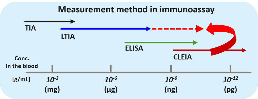 胶乳免疫比浊试剂的前世今生 上世纪五十年代,药物过敏患者血中的抗-药物抗体使结合了药物的胶乳微球发生聚集后以便观察浊度变化,可以被看做是将胶乳凝集反应利用于定量检查的开端。发展到七十年代,在自动分析装置上进行抗原/抗体定量的方案被提出。特别是在1975年,还有2篇利用光散射法定量的报道。但那时,受限于试剂的特异性、稳定性、仪器的精密度等各种因素,这种测定体系还未能实际应用在医疗场景中。 从七十年代末Technicon AutoCounter公司发布PACIA-System,直到八十年代初日本三菱化成的LPIA-System、荣研化学等的LA-System被发布,基于胶乳比浊技术的定量试剂才进入了商品化的应用阶段。各公司通过封闭胶乳的非特异结合、除去抗体的Fc片段、使用高纯度的抗原、寻找提高胶体试剂稳定性的方法等各种手段,不断摸索提高试剂稳定性和灵敏度的方案。 图为JSR胶乳微球电镜下形态 胶乳免疫比浊试剂的优势与瓶颈 经过40年的发展,伴随生化分析仪分析速度的提升,胶乳免疫比浊试剂因其检测速度快、通量大、具有较高灵敏度等优势,成为了医疗场景中不可替代的一种检测手段。 但是,随着近年来灵敏度更高的化学发光技术应用的普及,生化试剂的整体增长放缓;而各种集采制度的推行,试剂价格下调成为必然。经过多年发展生化试剂的价格本来已经不高,开发新项目,特别是灵敏度可以与化学发光竞争的项目,成为生化试剂厂家的一个新增长点。 不同免疫检测方法灵敏度对比 几个基于胶乳免疫比浊法的热门项目 ①KL-6(涎液化糖链抗原) 是人类黏液蛋白1糖蛋白(MUC1)上的一种大分子量糖蛋白抗原,在正常肺组织的II型肺泡细胞,呼吸性细支气管上皮细胞和支气管腺浆液细胞上表达。当发生间质性肺炎等情况时,血清KL-6浓度的升高可反映肺泡损伤、II型肺泡细胞再生和多种间质性肺疾病的活动度,可以作为肺组织高度特异性的标志物。目前该项目首个国产试剂注册证来自化学发光法,但是在日本、胶乳比浊法试剂占了更大的检测份额。 MMP-3是一族锌离子依赖性内源性水解酶,其活化可导至软骨连接蛋白、纤维连接素以及多种胶原酶的降解,有研究表明,早期RA患者外周血清中MMP-3水平显著高于正常人,与关节的功能评定呈正相关,可作为RA患者在滑膜损害和预后的指标。日本厚生省发布的2018年各检查项目检测次数统计数据显示,在与自身免疫疾病相关的检测项目中,MMP-3的检测量仅次于RF因子定量,排名第二位。类风湿性关节炎本就是与老龄化相伴的慢性病,需要长期服药、长期检测,这个项目在中国市场也是未来可期。 ③PCT(降钙素原) ④ABC套餐(PGI/PGII/HP抗体) 这是一套在日本进行体检时必做的套餐。PGI是检测胃泌酸腺细胞功能的指针,胃酸分泌增多PGI升高,分泌减少或胃粘膜腺体萎缩PGI降低;PGII与胃底粘膜病变的相关性较大(相对于胃窦粘膜),其升高与胃底腺管萎缩、胃上皮化生或假幽门腺化生、异型增值有关;PGI/II比值进行性降低与胃粘膜萎缩进展相关;HP抗体则可以确定是否感染了幽门螺旋杆菌。参加体检的人根据不同的结果提示不同的后续处理方式,如服药、或进行进一步的侵入性检查。日本通过推行这套体检套餐,有效的提高了胃癌早期发现率。 |
