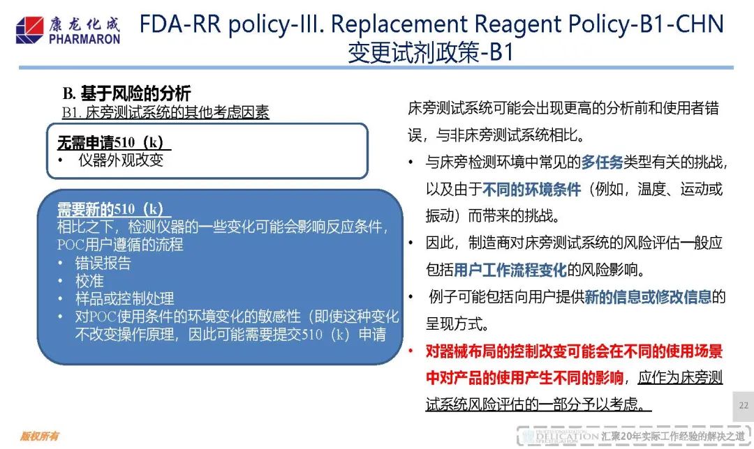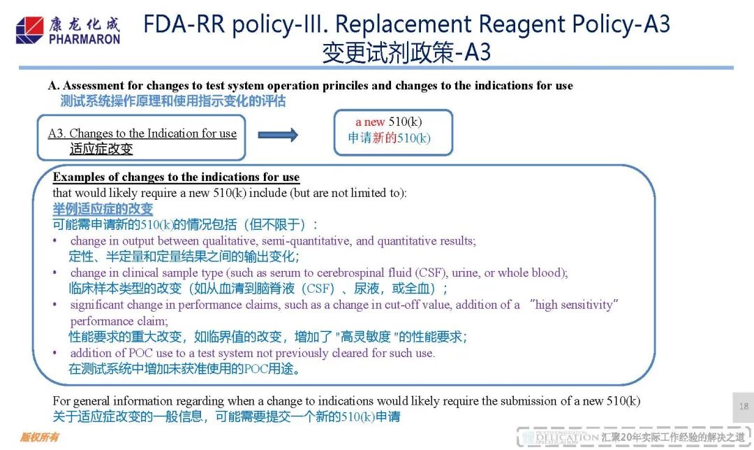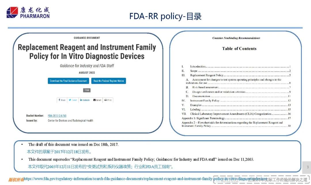 2022年8月18日FDA发布了对于试剂适用仪器的变更政策(Replacement Reagent and Instrument Family Policy for IVD Devices);距离上一版政策(Replacement Reagent and Instrument Family Policy; Guidancec for Industry and FDA staff” issued on Dec 11,2003)已有19年之久。