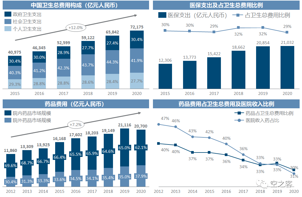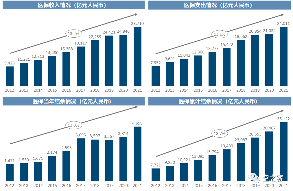 医保支付改革,对于近几年的医疗行业来说,毫无争议是带来最大变数的因素。特别是在大幅下跌的近一年多来,切身利益受损的市场参与者们往往将多数的怨气撒在医保支付问题上,几乎是“责任全在医保局”,甚至屡屡能听到诸如“医保控费彻底颠覆了中国医疗行业逻辑”的结论。这事听起来很容易引起认同感,毕竟创新药的价格真真切切被压低了,而且这几年不止一个行业因为不符合宏观政策方向而出现逻辑被颠覆、乃至于出现直接团灭的情况,再加上医疗行业又被广泛认为是应该有某种“公益属性”云云。然而这些都是间接的联想,我们还是要问一个最直接的问题:医保控费到底颠覆了医疗行业的什么逻辑? 先亮结论,笔者旗帜鲜明地反对医保控费颠覆医疗行业逻辑的观点,认为医保改革对行业的影响可以说是未雨绸缪、自始未变、意料之中、本该如此。在做详细分析之前,声明本文会遵循以下两个默认方法论,且对其合理性不做讨论:1)对所引用各有关部门发布的官方数据,不提供任何验证而直接采信;2)对高级别规划文件中提出的定量目标,在没有重大宏观环境变化的情况下,默认在制定规划前就已充分论证合理性,即大概率会实现。1. 未雨绸缪:医保改革不是因为现在没钱,而是为了未来攒钱“医保没钱了”好像已经成了业内不言自明的共识,毕竟“因为没钱了、所以要省钱”这个逻辑十分连贯,而且防疫指出、经济大环境和财政紧张等因素也都肉眼可见,这种说法听起来也就十分合理。然而,根据医保局披露的医保收支情况,我国医保资金不仅并没有穿底、而且资金健康状况是在持续改善的。在近十年时间里累计结余翻了5倍,特别是在2017年55号文以及2018年国家医保局成立之后,年度结余更是从一两千亿跃升到四千亿上下这个量级;即便是在2020/2021年的特殊情况下,虽然医保缴纳出现波动、防疫相关支出增加,但因为医院日常支出也减少了,所以整体的结余情况依然在增厚,甚至2021年无论是当年还是累计结余都创出了新高。须做说明的是,医保收入中除了社会筹资以外,政府财政补助也是重要来源,年度结余金额扣除补助确实是赤字的(2020年政府卫生支出中对医疗保障的支出是8,845亿元)。但这与“医保”没钱是两回事,因为每年政府财政都会有卫生的既定支出预算,除非有证据表明未来财政向医保的补助会大幅度削减,否则医保收入就有理由将此部分补助作为固定的来源。那问题来了,既然看起来地主家余粮很充足的情况下,为何还要这么抠抠索索呢?这当然没有任何矛盾之处,对于储蓄率逆天的中国人来说很容易理解的一个逻辑是,省钱的动力要么是现在没钱、要么是害怕将来没钱,中国医保控费的核心出发点就是给马上要到来的困难时期留下空间。 我们可以很容易地从历年出生人口数推导医保收支压力的变化,假设22岁开始进入医保缴纳范围、到60岁退出医保缴纳范围,每年这两批人之间的差值就反映了缴纳医保人数的净变化(这里高度简化,既没有考虑60岁以上人群医药费用增加的影响、又没有考虑高龄人群离世使得医药费用减少的影响)。明显可以看到,1960年代的出生大潮已经开始陆续退休,使得2022年恰恰是未来十年左右新增退休与新增入职人口倒挂的开始,这也将会是医保面临最大压力的十年,而再往后反而压力会减小。这就解释了为什么2015年要开始药审改革以及为什么2018年要设立医保局,在决策层的面前一定也摆着一张比这个肯定更加综合复杂、但原理基本类似的图,在2022年“倒挂”开始前的五六年时间,是为后面十年的困难时期攒家当的最后时间窗口。这些信息都并不是动态变化的,而是十年前就确定和可预料的情况,决策层能看到、你我也基本能看到个大概,信息不对称并不明显,也即所谓的“明牌”,无论是产业从业者还是投资者,都应有能力提前作出预判。这里想多夹带一句私货:永远不应该低估精英决策者的水平。如果你认为决策不完善或者不合理,那确实是有可能出现的,因为博弈过程可能存在大量场外因素,共同作用后形成的平衡未必是最优的结果;但如果你觉得决策很蠢甚至很无厘头,最好不要质疑他们的智商,优先反思一定是你有什么没看到或者没看懂的环节,看起来越蠢的现象就意味着你缺失的本质信息越多。医保有钱没钱只是个基础,关键要看它是不是还在持续为医疗卫生活动买单。除了上述医保支出依然在持续增长以外,它占卫生总费用的比例也基本上保持在30%左右的水平;同时,另一个视角是卫生总费用的构成中,个人卫生支出的占比在明显下降,从早年间的30-40%已降至2020年的27.7%,并且在“十四五规划”中明确要求继续降到27%以下,这就意味着医保将在中国的医疗卫生支付体系中持续发挥更重要的作用。 如果具体聚焦到药品市场,集采和医保谈判也已经执行了三四年时间,药品市场规模也并没有因为控费而萎缩,仍然在不断增长,这就完全与所谓“行业增长逻辑被颠覆”的说法相去甚远,也与那些真正被“颠覆”的行业景象完全不沾边。 同时也必须看到,支付结构确实在发生调整,药品增速不及整个卫生总费用、因而药占比显著下降,以及院内药品增速不及院外、因而院内占比也在下降,而“破除以药养医”这本就是医保改革的题中之义。 除了宏观的总体数据,我们也不难从那些哪怕是所谓“传统”药企的收入上看出,从