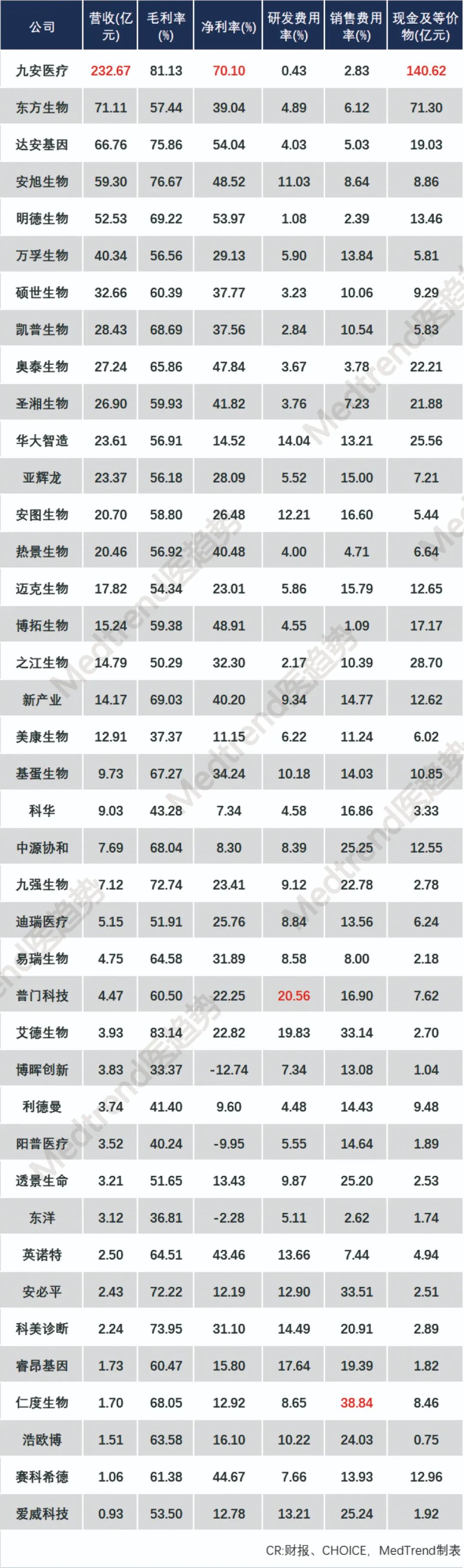 净利率最高的“吸金”板块:体外诊断九安医疗、达安基因、明德生物 排前三