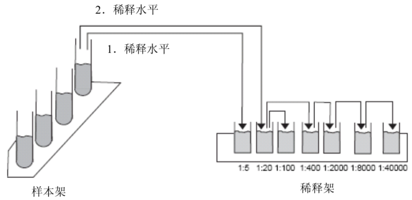免疫散射比浊法与免疫透视比浊法 冯仁丰 二、散射和透射的关系 历史上,1938年开始出现了 “光反射仪(photon reflectometer)”和以后的“散射仪”。它们在某个固定角度检测散射光强度,即检测液体的“浊度”。以后为临床实验室设计专用仪器,去检测常规程序需要的免疫沉淀结果。至今,还有两个公司的免疫散射比浊专用分析仪。一个是现在的美国DADE BEHRING MARBURG公司,该公司购买了德国的原Behringer公司所有产权,包括了著名的BN°II系统散射分析仪。BN°II分析仪为固定时间模式,但在固定时间下采用了多个检测模式,在约角度10°进行检测。另一个是美国Beckman公司。ARRAY散射比浊分析仪,强调采用速率检测,被称为“速率散射仪”,在角度约60°进行检测;这两个产品依然在使用。 散射比浊信号不能被表达为分子或摩尔消光系数,它们以毫伏(millivolt)或bit为仪器读数。自1954年起,免疫沉淀的散射光强度也间接地以透过光强度的减少进行检测。这个原理被称为“透射比浊法[turbidimetry]”。透射比浊或散射比浊检测设计中,它们的光检测器位置与入射光的光路中不同,可见图6。 图6、散射比浊和透射比浊仪器不同光检测器位置示意图。 在透射比浊检测中,检测了未散射的光量和直接向前光散射的总量。因散射使光在180°方的上的损失,造成犹如 “虚拟”的光吸收表现。所以,透射比浊信号被检测的是吸光度。 光度计的设计要求极度注意平行光,但是对光检测器和透镜的距离和位置不必很严密。可是在散射分析仪中,因散射光的射向四方,厂商在仪器设计和制造中,非常重视光检测器的位置、与入射光的角度,必须确保检测散射光结果的再现性。透射比浊检测在原理上与任何光度计一样,必须保持入射光和射出光始终呈一条直线,保持180°角度。 所以,在不同品牌的光度计间,吸光度检测结果是可比较的,但透射比浊读数在不同光度计间有显著变异(图7)。进行比色检测下,光检测器和比色杯间的距离不会对吸光度检测有影响,但在散射比浊上,光检测器与比色杯位置不同的仪器间,被检测的散射光表现的吸光度值的比浊读数有很大差异。 图7、光检测器位置对透射比浊信号的影响。 另外,由于进行散射比浊出现的光散射值,检测的是发生散射的光强度。而使用透射比浊的读数,是被免疫颗粒散射后余下的射出光与未经散射前入射光的比值。吸光度读数很大,实际上是被散射后余下射出光的强度很小。因此,在散射比浊仪上检测的散射光强度越高,得到的散射光读数更大。为了让散射仪器可以检出合适的散射光强度,散射比浊必须将检测样品进行很大的倍数稀释后再行检测。而这样的稀释,会需要进行多次。使得最后反应后检测读数的精密度受到很大的影响。散射比浊检测的灵敏度很高,但是检测的重复性有问题!有文章报告(图8),对样品中IgG检测,使用了散射比浊和透射比浊。得到的IgG的均值大致相同;但检测的不精密度还是散射要差得多。 图8、透射比浊和散射比浊的蛋白检测精密度 出现散射比浊结果精密度要差于透射比浊结果的原因,还是散射比浊检出的是被免疫复合物散射出来的光强。样品中某个蛋白质含量较高下,它与试剂中聚苯乙烯上的对应抗体反应产生的凝聚颗粒越多。在此情况下,要使散射比浊检测的光强在一定的范围内,必须对检测样品进行更大倍数的稀释。在BN°II的免疫散射比浊仪上,专门具有系列稀释样品的自动操作功能。以下为该产品说明书上的摘录: 7.3.6.5 样品稀释 需要时,病人样品的稀释由系统用N个稀释液,按多个稀释步骤自动完成(1:5、1:20、1:100、1:400、1:2000、1:8000、和1:40000)。在一些情况下,这样的处理是很必要的。 在BN II操作说明书中,有图示说明,在它们的散射比浊分析仪上,仪器自动进行样品稀释。如下图所示(图9)。 图9、BN II免疫散射比浊分析仪样品自动稀释示意图 由此,说明了在免疫散射比浊分析仪上,样品多次被成倍稀释后再检测,检测结果的精密度,随着样品内被分析物的浓度越高,它的重复性就越有问题。这就是散射比浊的一个严重问题!相比之下,使用一般自动分析仪,几乎不存在检测前对样品进行如此的预稀释。进行免疫透射比浊确实会得到全世界的临床实验室人员的喜爱!方便和实在。 从所有实际的目的上考虑,免疫散射比浊与免疫透射比浊间对蛋白进行免疫沉淀方法的检测,相互间差异很小。从工作量考虑透射比浊,越来越普遍在,因为它可应用到常规的临床化学分析仪上。酶和底物测定,与蛋白检测结合。特别有优势,对尿液白蛋白的浓度,无论是散射比浊或透射比浊,都必须被标准化到其他参数,如肌酐。 TO BE CONTINUED |