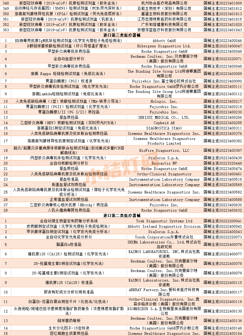 截至2022年12月,国家药品监督管理局共批准注册IVD产品452个。其中,境内第三类IVD产品353个,进口第三类IVD产品28个,进口第二类IVD产品71个,港澳台IVD产品1个。