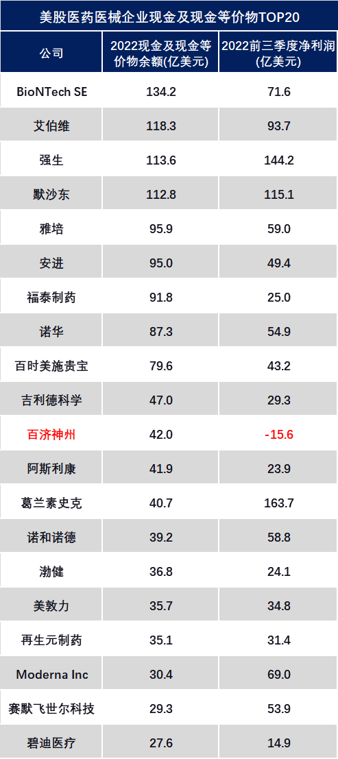 在大健康这个可以说是“最烧钱”的行业,企业越来越担心经济低迷导至“资金”枯竭。因此,全球大健康企业纷纷“屯现金过冬”。但是,对于一些企业来说,有“钱”也无法不一定高枕无忧,因为那些有着庞大现金流的大企业,也正在虎视眈眈,希望在这个价格洼地时期攫取更多的优质资产。现金为王。在讨论近期“过得不太好”的大健康企业之前,我们先来看看,哪些大健康企业现金最充裕。从2022前三季度公开的财务数据来看,全球大健康行业现金及现金等价物最高的企业,新冠疫苗新贵BioNTech、免疫巨头艾伯维以及强生排前三。截止2022Q3;美敦力2022财年为(2021年5月-2022年4月);碧迪医疗2022财年为(2021年10月-2022年9月)。1英镑=1.2127美元;1丹麦克朗=0.1403美元。