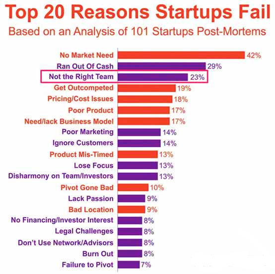 这些新成立的IVD企业里,又有多少是在疫情中苦苦挣扎的,以上几类初创企业各有各的痛点。生于新冠,但不能获益于新冠,是他们的痛!打铁还需自身硬,组建团队打造核心竞争力是他们初期的共同目标。疫情反复,可初创公司依旧是“一将难寻”。与此同时,根据CB Insight 2021年的调研数据,全球大于1/5的初创公司因人才与团队问题死亡,可见招人难、管理难是初创们普遍存在的挑战。