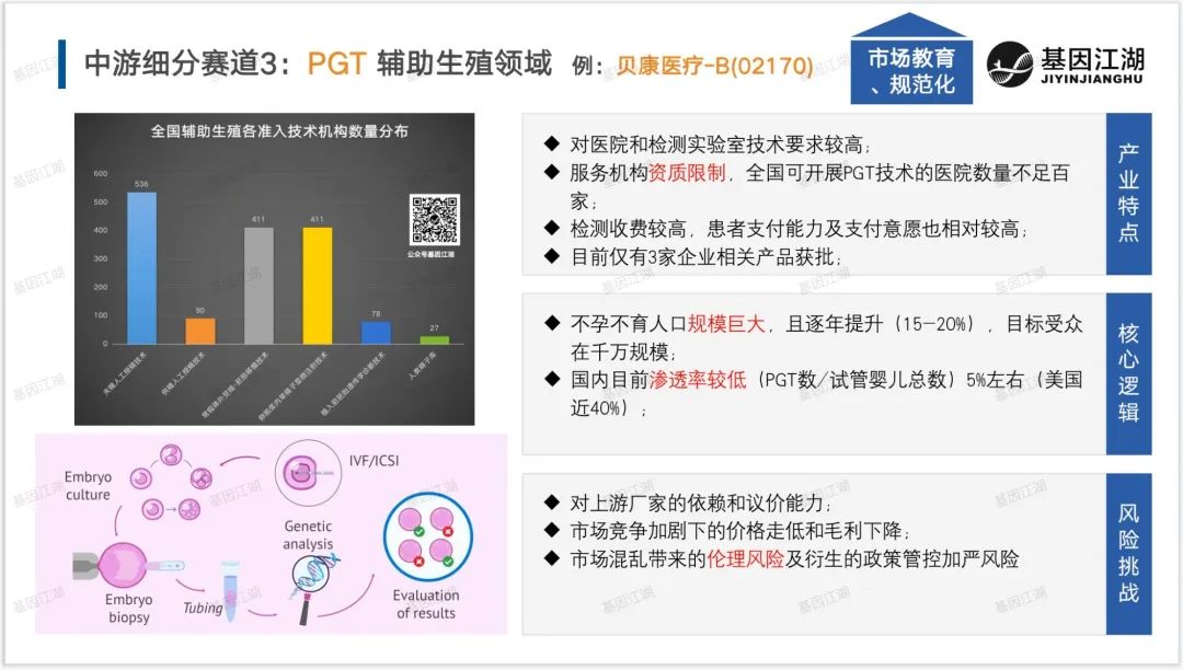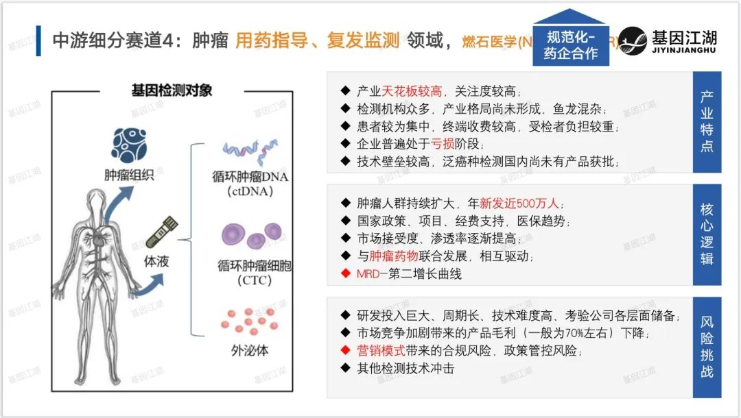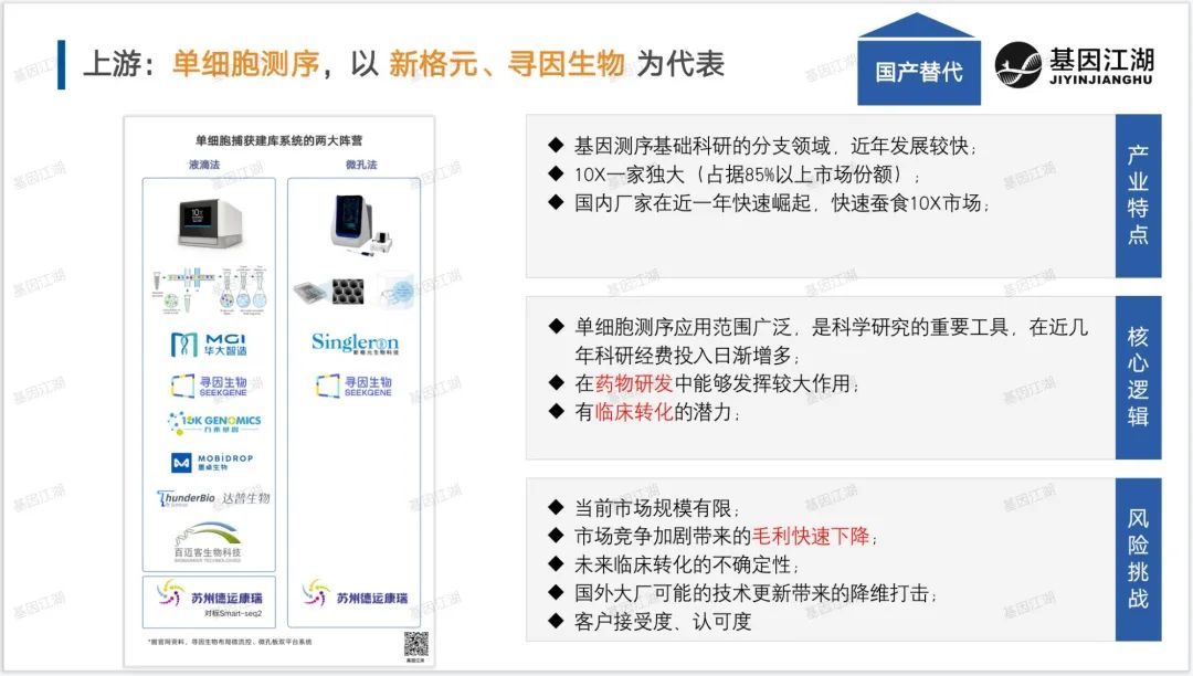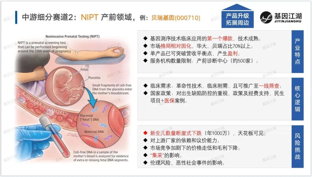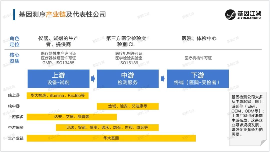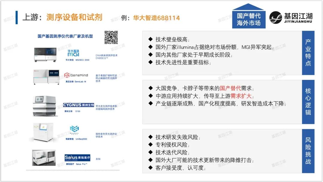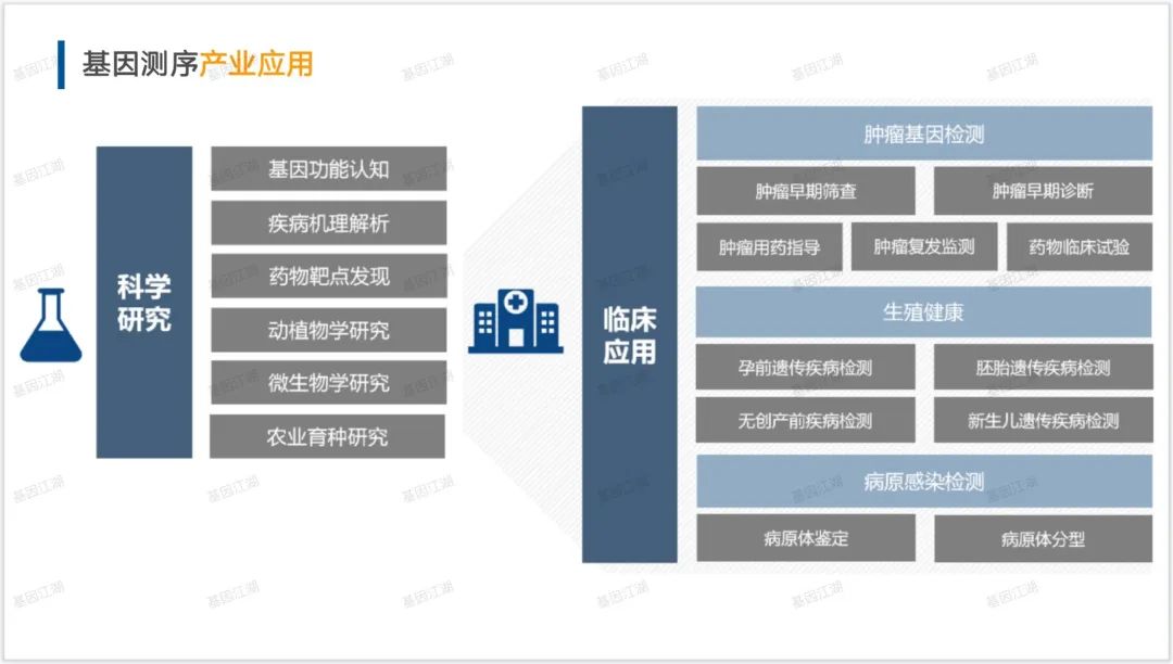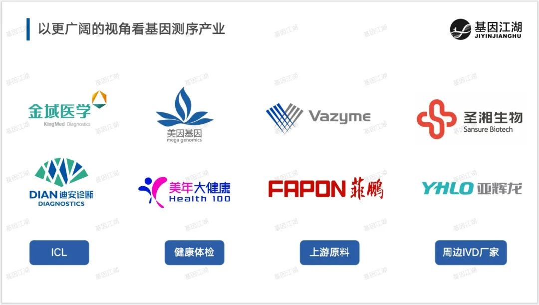 本PPT取自11月份笔者在德邦证券线下分享的PPT,听众主要是二级市场投资人。该群体一般并非医药背景,会同时看众多行业、多支股票,重点关注中短期赛道发展、公司前景,以辅助投资决策。 本PPT分为三个部分: 第一部分:技术。 聚焦测序技术,让受众对测序技术有一个客观认识; 第二部分:产业。 依次以产业、行业、赛道、公司(从大及小);以行业内上市公司分析(听众较为关注和熟悉)为切入口,探讨各个赛道的现状、风险、潜力、未来发展的突破口; 第三部分:展望。 依次为技术发展趋势、行业发展趋势、政策监管趋势,及畅想基因测序的未来形态。 核心观点已在PPT中进行描述。 提醒基因江湖的朋友们注意,本文只代表个人观点,一家之言,个人所见皆有局限,请批判性阅读、独立思考,更不构成任何投资建议。如有不同观点,也恳请加笔者微信讨论。 *NGS测序临床应用10年后,我们怎么重新看待这个技术?可以点击以前的文章:📎 沉思录 |