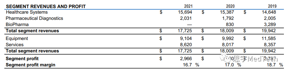 01 2022年7月18日,GE发布了其计划通过分拆组建的三家全球领先的投资级上市公司的全新品牌标识。这三家公司将分别聚焦医疗、能源和航空三大增长型行业板块。GE医疗业务将命名为GE HealthCare。 GE能源业务将命名为GE Vernova,旗下涵盖:GE可再生能源、GE发电、GE数字集团和GE能源金融服务业务。目前,GE能源业务及用户提供了全球三分之一的电力,并将持续致力于提高能源的可靠性、可及性和可持续性。 GE航空业务将命名为GE Aerospace。目前,GE Aerospace在全球拥有39,400台在役商用飞机发动机和26,200台在役军用飞机发动机。 GE计划在2023年初完成对医疗业务的拆分。独立后的医疗业务将推动在精准医疗领域的创新,聚焦改善患者预后和疾病诊疗水平,应对患者和临床面临的严峻挑战。 传承GE百余年的历史积淀,GE HealthCare这一新名称和品牌标识诠释了新公司对安全、品质、信任和创新的不懈坚持;而新的品牌色调“温情紫”象征着人性、温暖和关爱,以及公司对卓越的追求。GE HealthCare在全球拥有400万台装机量,每年对患者进行超过20亿次检查。 2022年11月23日,GE公司发行了82.5亿美元的优先票据,以配合公司的GE HealthCare的拆分计划。GE表示,这些票据将是GE HealthCare的优先无担保债务,在剥离完成之前,GE HealthCare计划将发行新货币票据的净收入分配给GE,这将使GE能够偿还现有债务,直至剥离完成。 02 根据GE在2022年2月公布的2021年财报,GE集团总营收711亿美元,在航空、医疗、再生能源、电力等业务板块中,只有医疗实现了正增长。 2021年,GE医疗订单196亿美元,业务总营收177亿美元。其中: