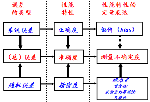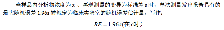 2023 临床检验的常规检验结果是否必须引入不确定度? 冯仁丰 最近,有文献专门介绍当今需要大家认识的准确度、正确度、精密度等的词语的意义中,Antonio Menditto[10]等为了使读者更好地理解,用图表示了这些术语的关系(图1)。其实,这个图最早在上世纪的90年代就出现过,只是没有引起大家的关注。在图中,作者将表示结果总误差与不确定度联系在一起。 李慎安在书[6]中,讲到不确定度概念在发展中曾经采用过的定义:“(1)由测量结果给出的变成了的估计值中可能误差的量度。(2)表征被测量的真值所处量值范围的估计。” 以上,特别是(2)在我国1991年第一次修订的JJG1001-91《通用计量名词及定义》中就是如此。这(1)、(2)两个定义从传统概念上来说,与目前给出的定义是一致的。但是,它们着眼于不可知的量即测量结果的误差与被测量的真值(不是它的估计值),从而不具有可操作性而被放弃。不论是采用上述的(1)还是(2),亦或现在的定义,这三个定义中的哪一个不确定度的概念,不确定度的表达形式也是一致的。可以这样认为,从便于理解来说,未必不可以用(1)或(2)的概念,但应注意,不能把(1)或(2)作为定义来对待。因为测量不确定度是测量结果质量的定量表达,而不能立足于不可知量”。这些解释的内容让人容易理解误差和不确定度的关系,它们其实很近,只是在不同场合下严格的正确应用上有差别。 图1 误差类型、定量性能特性和它们定量表达的关系 三、不确定度与误差的正确应用 1.不确定度是表示报告结果值不确切或不可靠性的良好方式。 非常重要的是,提出使用不确定度的目的是为了体现分析测量报告值具有的质量。从科学角度上,对某标准物质确定内含被测量的值必须采用分析实验手段,即使实验过程的设计非常完美,但是一定有误差,使各个重复或再现的测量结果间尽管很接近,实际是不同的。采用了统计手段处理归纳,即使用平均值报告结果,再用相同的方法技术和过程测量相同的样品,结果还是有差异,这是事实。因此,客观地说明报告值的同时,附上该值可能的不确定性,即不确定度,是人们对计量值的全面认识的反映。问题是为什么不用误差,却采用不确定度?其实这是说明问题的两个方面。不确定度表示的导则强调报告值本身,它们具有的不确定性难以用什么误差来描述。而且,在对各类误差的定义在世界上实现国际化后,发现更难以用误差来表示这个不确定性的含义。例如,随机误差(random error)的定义被修改为:测量结果与在重复条件下,对同一被测量进行无限多次测量所得结果得平均值之差,可以表述为: 这样描述的随机误差因每个重复测量值不同而不同;随机误差只对给定的测量结果而言,而不存在对重复条件下其他测量结果均适用的随机误差大小。因此,认为测量结果的不一有随机误差,而具体的误差量值无法表达。还有,按照不确定度要求的测量必须处于最佳状态,即对已知的所有系统误差均采取了修正的措施予以“消除”,这样的结果若还有变异,难以用存在系统误差来解释。惟一的做法就是不再以误差的观点去描述,单纯采纳了实质是标准差或标准误差的不确定度。这是计量参考系统接受的做法。 因为不确定度的本质就是标准差、标准误差,因此,不确定度值越小,说明报告值可能的变异越小,则报告值越可靠,质量越好;反之亦然。 2. 是否有了不确定度,以后误差就不用了? 这是错误的认识。前面已经强调了,计量参考系统在报告结果的完整性时,统一采用不确定度表示不确定性。从来没有、也不会不使用误差了。误差和不确定度都重要,它们各自在不同的场合发挥作用。 为了确保分析测量的质量,全球普遍接受了质量管理的概念和行为[15]。管理中的质量控制、质量评估等实际是对分析过程的误差管理、控制和评估。在国际认可的计量参考实验室,他们为了确保分析测量结果的质量,在误差控制和评估上的严密、完善,达到了完美的程度。所以,误差无处不在,对它的管理也永远不断。 只是,今后在表示结果不可靠性,采用误差描述时千万注意表示的方式。临床实验室自从有了误差的概念后,一直采用分析过程的质量控制方法控制分析误差;进行检测系统性能的评估时,坚持采用对误差的估计来反映误差的可能大小。例如,我们对随机误差的估计是采用标准差计算的。在了解随机误差的定义前提下,针对临床实验室的特点: 实际上,这样的做法并不和当今随机误差的定义有不一致的做法。注意:我们对所有的误差都是估计,不是真正的误差绝对量。 3. 不确定度的推广应用还有很长的路。 很有意思的是,至今国内(也许是全世界)的计量器械行业,它们提供的容量瓶、容量吸管等,区分它们质量等级的依然采用“允许误差”限值。不确定度表示的导则出台已经这么多年,为何计量部门直接管辖的计量器械不用不确定度表示产品质量?只能说明,要在每个领域实施不确定度的表示需要时日;更不要说临床实验室的报告。 四、临床实验室是否在患者检验结果上适合使用不确定度? 1. 清晰认识临床实验室检验的特点是回答是否的关键[12-15]。 从历史上出现临床检验以来,这个行业就为患者出示检验结果,因而它属于分析领域。但是,不知是什么原因,它有两个最突出的特点:(1)对患者样品的任何要求检验的项目(被测量),实验室一般均只作一次就发出报告。(2)