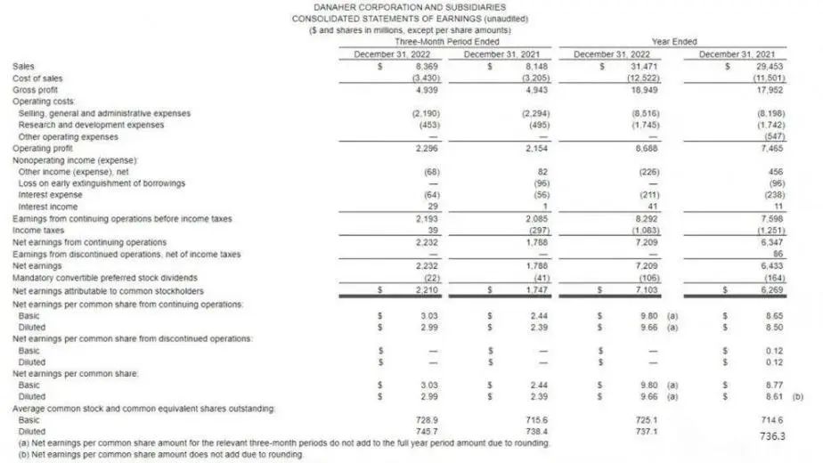 近期,丹纳赫发布2022年全年及第四季度财务业绩。公司2022全年收入315亿美元,增长7.0%,净利润为71亿美元,同比增长13.5%。