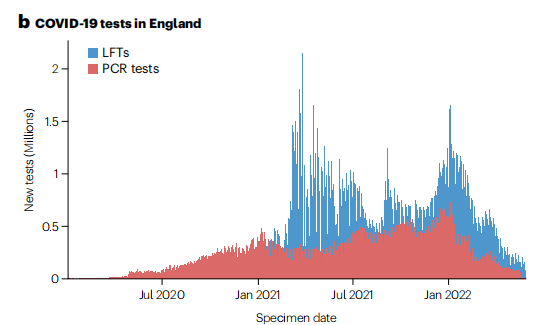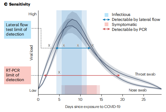 诊断已成为新冠肺炎传播的关键对策,到2022年底,全世界已进行了30多亿次SARS-CoV-2检测。逆转录聚合酶链式反应(RT-PCR)仍然是诊断新冠肺炎的金标准,基因组测序对追踪变异至关重要。然而,侧流免疫层析测定(LFT)虽然不如PCR敏感,但由于其简单、低成本、可获得性、快速结果和检测传染性的能力,使得临床和公共卫生领域的全球检测规模空前。虽然它们不如PCR敏感,并且依赖于视觉读数,也缺乏数据收集方法。然而,超敏纳米材料的创新、基于CRISPR的检测、移动应用程序连接和深度学习极大地改进了LFT技术。 近日,一组来自世界各地包括英国、美国、新西兰的研究团队在新创办nature reviews系列杂志nature reviews bioengineering上发表了一篇题为“Lateral flow test engineering and lessons learned from COVID-19”的综述文章。在本综述中,研究团队讨论了LFT的设计原则,并强调了在新冠肺炎疫情中使用LFT的关键经验教训,包括可及性、准确性、可承受性、制造、监管和资助。还研究了LFT检测对流行病、地方性感染和抗微生物耐药性的影响,讨论旨在满足REASURED标准的生物工程方法(即,具有实时连接、易于制备样品、价格合理、敏感、具体、用户友好、坚固可靠、无设备或环境友好、可交付给最终用户)。最后总结了研究人员、行业、资助者和决策者的研究与开发(R&D)优先事项。 图片来源:Nature reviews bioengineering 一、从新冠肺炎中吸取的教训 大规模测试 在新冠肺炎大流行期间,LFT有多个临床和公共卫生使用案例,在有症状的个体中进行检测以确认诊断,在已知暴露的个体中筛查无症状个体,陆地或海洋边界检测以减缓新变种的引入,检测以确定抗病毒治疗的有效性等。 专业使用和自我测试使基于LFT的测试能够扩展到医疗设施以外的社区和家庭。在英国,在不到12个月的时间内使用了2000万次测试,超过了RT-PCR测试(如下图)。然而,相比高收入地区,中低收入地区的采用率大大降低。 英国快速采用LFT。图片来源:Nature reviews bioengineering 准确性 LFT的准确度,尤其是敏感性低于参考RT-PCR方法,SARS-CoV-2抗原LFT的灵敏度在34.1%至88.1%之间,总体特异性为99.6%。在分析上,快速抗原测试可以检测到病毒,其水平相当于每毫升约100000至1000000个SARS-CoV-2病毒基因组拷贝。这种敏感性和简单性之间的权衡长期以来限制了对某些病原体使用LFT。新冠肺炎抗原LFT的成功部分归因于SARS-CoV-2的病理生理学(如下图),即其潜伏期短、传播率高、病毒载量高,非常适合快速、频繁的检测。但假阴性新冠肺炎LFT检测结果仍然是一个问题,因此,LFT检测的时间和频率对于早期症状感染和筛查个体(在旅行或大规模集会之前)非常重要,因为感染者可能在前24 小时的LFT检测中呈阴性。 幸运的是,新冠肺炎抗原LFT具有足够的准确性,可以有效大规模检测SARS-CoV-2。然而,为新冠肺炎开发的LFT平台不能自动转移到其他可能流行的疾病,其中许多疾病将更难通过LFT检测。 LFT的准确性。图片来源:Nature reviews bioengineering 开发和扩大 从新冠肺炎大流行开始,大量资金被用于SARS-CoV-2测试的开发和应用。美国快速诊断加速(RADx)计划在诊断方面投资了超过15亿美元(2020年),包括开发新的诊断技术以提高现有实验室能力。基于共享的序列数据,可以快速开发针对新病原体的RT-PCR测试。相比之下,抗原LFT的开发在最佳情况下需要数周至数月,包括针对目标分析物的捕获受体(通常是抗体)的设计。此外,公司通常开发自己的专利试剂,这导至诊断试剂的国际标准化一直存在问题。参考测量框架和标准开发有助于确保新病原体爆发期间的准确诊断及其可用性。 每月可生产数百万LFT,以负担得起的价格满足全球需求;然而,这种规模的扩大需要对制造业基础设施和时间进行投资。到2020年底,缺乏LFT制造能力是新冠肺炎应对的主要瓶颈。在G7的一份报告中,要求政策制定者在100天内为下一次疫情做好LFT准备,诊断制造能力和监管被确定为需要改进的关键领域。 数字数据捕获 新冠肺炎LFT自检结果(阳性或阴性)通常未报告,导至检测使用数据和真实病例数未知,从而使监测复杂化。 分析LFT结果的数字方法非常罕见,而且尚未广泛应用。i-sense的一个英国研究团队与非洲健康研究所合作,开发了一个包含11000张现场采集的HIV LFT照片和深度学习模型的图像库,以对结果进行分类,以确保质量。与目视检查相比,这种方法减少了误报和漏报的数量。与英国REACT研究合作,将相同的模型应用于新冠肺炎LFT,并开发了一个工作流程来分析50多万份新冠肺炎抗体LFT自检。 二、LFT感染相关的其他用途 WHO有流行潜力的疾病 目前,商用LFT无法用于八种已知的具有流行潜力的优先疾病中的四种:克里米亚-刚果出血热、中东呼吸综合征冠状病毒(MERS-CoV)、尼帕和其他亨尼帕病毒,以及裂谷热。对于剩下的四个,生物工程挑战仍有待解决。低敏感性限制了丝状病毒LFT的使用(例如埃博拉);拉萨热LFT需要热稳定性;而寨卡LFT可能需要同时检测抗原和IgM以提高特异性。 细菌耐药性 抗菌药物耐药性的“无声大流行”仍然是一个巨大的全球负担。在全球范围内,2019年,估计有495万死亡与抗菌药物耐药性有关。 目前确定抗微生物药物耐药性和敏感性的方法通常依赖于细菌培养,表型敏感性测试需要在样本采集后36至72小时的周转时间。通过快速、低成本的即时诊断,包括具有数据采集的多路LFT,可以缩短