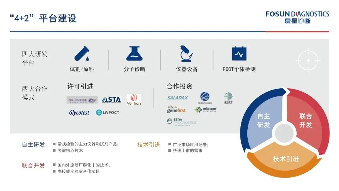 值得一提的是,复星诊断高度重视中国市场的产学研转化,与复星集团的科创委员紧密合作,与高校、医院等尖端科研诞生源头密切互动,推动先进科技早日进入临床应用。 国际生态:license-in/out助推“大循环” 国际市场上,复星诊断已经形成了技术引入与出海的“大循环”。 一方面,复星诊断通过license-in把海外的先进技术引入中国,如微生物检测、肿瘤早筛、特殊药物浓度检测等。 另一方面,复星诊断通过license-out把自身的优势产品带到海外市场,为全球顶级企业做ODM/OEM。 复星诊断的科技工业能力在国际市场获得高度认可。 诊疗生态:天然具有“一体化”优势 “全生命周期的诊疗体系”是医疗生态的终极目标。 复星诊断在诊疗生态的搭建过程中是具有天然的优势的。将复星集团旗下的诊断、治疗、监护、评估等业务进行联动整合,就能够形成“诊疗一体化”的生态布局。 比如复星体系中,既有用于检测的抗原与核酸,也有用于治疗的药物阿兹夫定,还有用于预防的疫苗(疫苗目前仅在香港、澳门获批),这些共同构成了诊疗一体的完整抗疫解决方案。 与国内、国际企业的合作,能够将复星诊断的诊疗一体的优势放大,进而为更多的患者提供更优质的服务。 复星诊断坚定地走在转型的路上。道固远,笃行可至;事虽巨,坚为必成。 |