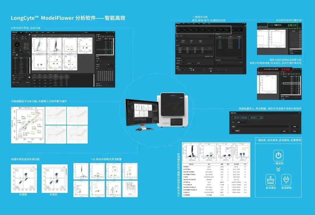 LongCyte™功能及特性 01 26 种型号配置可选, 低配可原位升级至高配 LongCyteTM 具有26种型号,系统配置灵活,它的光学系统、检测器单元和电子系统可更换:激光器配置1-3个,包括488 nm激光器、638 nm激光器和 405 nm激光器 ;仪器预留激光器及检测器位置,可实现低配原机升级至高配三激光或者配置更换。LongCyteTM 最高配置3激光14色流式细胞仪可同时检测 14个荧光参数(488nm 5色、638nm 3色,405nm 6色)。 02 标配自动进样系统 1 标配内置孔板式进样盘,节省空间; 2 兼容多种进样器:96 孔板(U底、V底、平底), 40 孔试管架、40 孔 EP 管; 3 自动进样、手动进样随意切换。 03 专利设计的搅拌功能 1 单管搅拌混匀: 可设置搅拌力度和时间, 保证样本充分混匀且单次处理; 2 样本间自动清洗内外壁: 极低的携带污染率; 3 智能识别试管底部: 保证珍贵样本彻底吸干,不剩一滴残留; 4 自动报警与处理故障问题: 防撞针系统和排堵功能。 04 体积法绝对计数 1 采用高精密度的定量泵进样; 2 经过校准的测量系统,保证结果准确; 3 兼容Trucount法测量,自动出结果。 05 不断升级的智能分析软件 - ModelFlower 1 中英文界面切换,Windows操作模式, 简洁直观; 2 强大的模板功能,可以保存、复制、 批量应用模板; 3 快速补偿及自动补偿功能; 4 测量时可同时分析已测数据; 5 可进行40孔流式管/EP管 或96孔板批量化测量; 6 自动质控监测仪器状态,记录红蓝光 延迟及仪器分辨率等性能参数状态, 形成Levey - Jennings质控图, 全程监测仪器状态; 7 完善的数据导出功能,可以随心所欲的 设置导出格式,方便统计测量结果或 进行LIS连接上传。 8 完善的Lis联网功能,经过多家重点医院的 使用测评,满足大部分用户的需求,解决 数据整理和上传的痛点; 9 检测报告直接输出。 10 兼容市面上所有的细胞因子数据格式, 方便导出数据。 更多层浪流式细胞仪 客服热线: 400-1011-131 13011121581(工作时间) 18612989793(非工作时间) 邮箱: sale@challenbio.com |