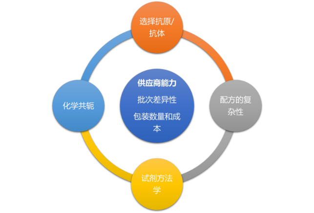 设计化学发光(CLIA)试剂盒需要考虑不同的方面,包括试剂开发和方法选择的原材料,以及检测方式的选择。材料供应商是成功设计和开发检测的一个关键因素。 一个理想的供应商不仅要能以可靠的成本提供所需的原材料,而且要能提供所需的批量,以扩大试剂的规模。此外,供应商应提供不同的批次,以评估批次与批次之间的差异性,以检查对将要开发的检测方法的影响。 磁珠选择的策略 磁珠有不同的尺寸,从纳米到几微米不等。较小的磁珠可能需要更多的时间来使用磁力分离器进行分离。磁珠的分离时间在很大程度上取决于磁性颜料的数量。更高的颜料百分比将导至更快的磁珠分离。应在磁性色素和磁珠的大小之间达到平衡,以保持磁珠的正确密度。 设计CLIA测定需要考虑不同的方面,包括试剂开发和方法选择的原材料,以及检测方式的选择。材料供应商是成功设计和开发检测方法的一个关键因素。 用于CLIA的化学改性磁珠 一个简单但不太稳定的磁珠表面共轭策略可以通过抗原或抗体直接被动吸附在 "普通 "磁珠的表面来实现。另外,如果抗原或抗体的共价连接对检测很重要,那么修改磁珠的表面化学成分是一个很好的选择。活性基团利用磁珠的大表面积,为你的抗体或抗原提供丰富的锚点,使之与磁珠共价连接。 可使用的预激活化学品的一些例子是流行的Tosyl基团或环氧树脂。还有其他需要激活的基团,如羧基(-COOH)、胺(-NH2)和羟基(-OH)。这种做法也被称为磁珠的化学功能化。 用于CLIA的生物改性磁珠 生物修饰磁珠(也被称为表面生物功能化)也是CLIA开发的一个常见策略。 有几种类型的生物修饰磁珠。所选择的抗体或抗原可以用生物素连接物进行修饰,与用链霉素修饰的磁珠结合。蛋白A与大多数免疫球蛋白的Fc区结合,使其成为将抗体固定在磁珠上的有吸引力的选择。 同样地,蛋白G与一系列免疫球蛋白的Fc或Fab区结合,可用于固定抗体。有时蛋白A和G一起使用以增加潜在的抗体结合谱。也可以连接特定的蛋白质,但这需要优化。 当选择生物修饰的磁珠用于CLIA测定时,重要的是检查这些磁珠与样品类型的兼容性,以防止样品的成分与磁珠的生物表面发生非特异性的相互作用。 |