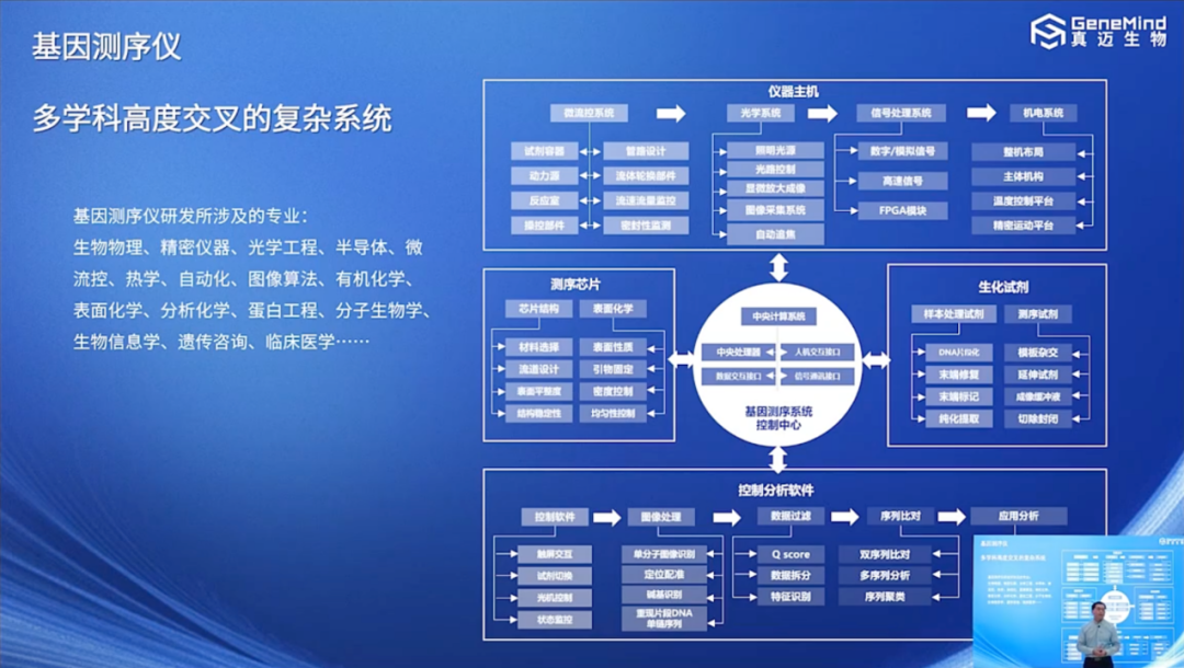 结论1:测序仪曾号称是工业皇冠上的明珠,在今天依然是。测序仪是集光学、机械、电子、流体、软件、算法、生化等多个交叉学科于一体的复杂系统,既对单项技术方向有很高的要求,也对架构设计和系统集成有很高的要求。图源:真迈生物GenoCare1600上市发布会截图且不说各种核心技术环节的突破,单从团队人员要求,就可以大致推测,如果研发一台主流的二代测序仪,可细分为光学、机械、电子、流体、软件、生化、算法开发、应用开发等近10个研发小组,每个小组的带头人都要能独挡一面,一步拖后腿,整个研发节奏就会受到影响。从0-1门槛的降低,主要得益于相关人才的聚集、供应链的日益成熟。基因江湖群内曾讨论:为什么大多测序仪企业在深圳。群友一针见血,直言如下:人才永远是第一位的。在华大智造、真迈生物等企业的成长过程中(甚至再早可追溯到华因康等),培育了大量具有实战经验的本土测序仪研发人才,再加上海外人才的回流,人才荒的局面在一定程度上得到缓解。其次是供应链。据华大智造招股书的披露,测序仪生产所用原材料主要为生产仪器设备所需的光学器件、流体器件、自动化器件等,以及生产试剂所需的包括酶、dNTP、合成引物、化学辅料等。对于大多初创企业而言,无需也没有能力完全覆盖,部分委托加工是更合适的选择。华大智造、真迈生物等企业的成长过程,也带动了整个测序仪的供应链体系日益完善。笔者曾请教于业内朋友,“测序仪产品从0到1,与产品从1到N,考察的维度大不一样。甚至1到N的过程,也绝非一个简单的复制过程。量产时,产品稳定性、良品率如何控制在一个合理的范围,需要大量的条件摸索。比如一个简单的打包运输方案,就要根据销售地的差异来设置不同方案。如果从未做过类似工作,根本不知道期间会埋了多少雷,有多少坑。所以该走的路,一步都省不了。” 图源:真迈生物GenoCare1600上市发布会截图(真迈路径比较有代表性,从原理机→工程机→试产→商业化转产→注册报批)漫长的研发和量产过程、艰难的商业化过程,再加上可能的巨额的产品注册报批费用,无一不在提示,测序仪的制造过程,是一个富人的游戏。无论海外Element Biosciences、Ultima Genomics,还是国内华大智造、真迈生物、赛纳生物、齐碳生物的融资历史和商业化过程,都是答案。